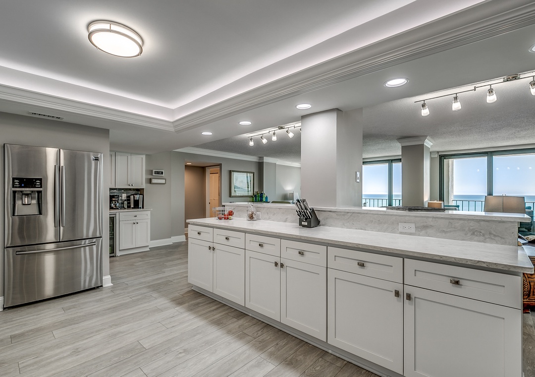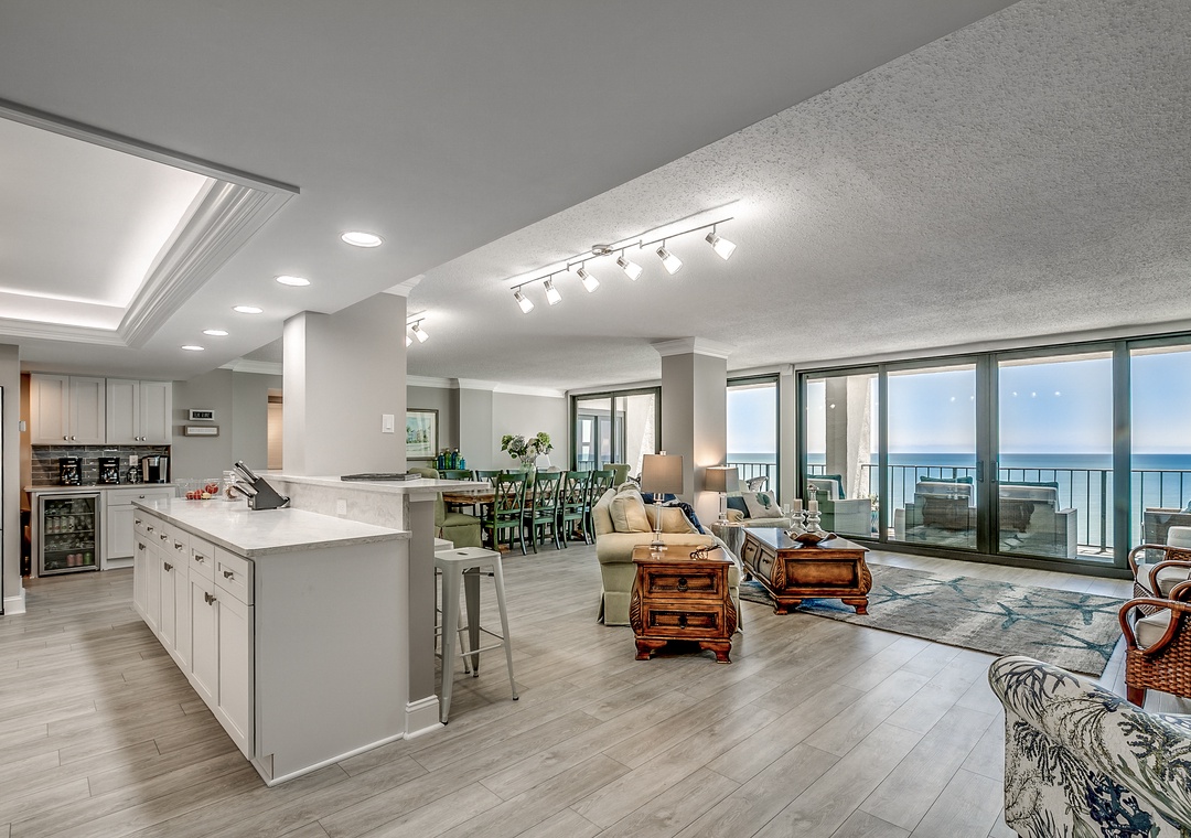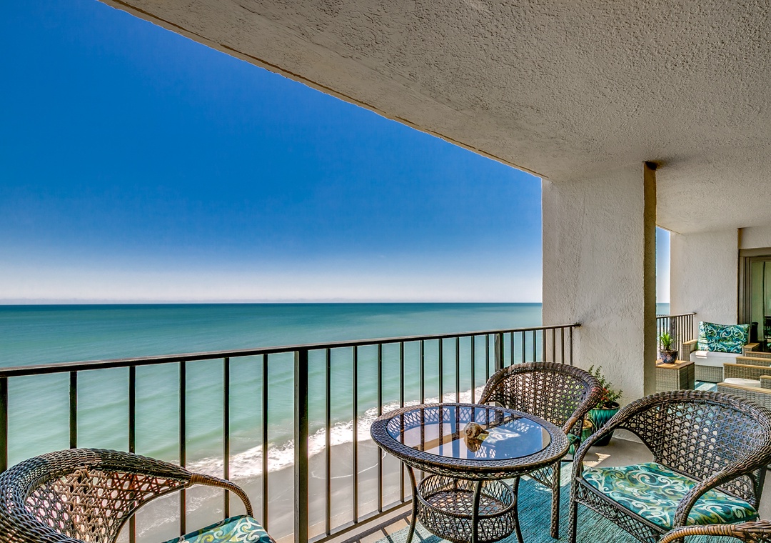 The condo is beautiful. Looks like you're on a cruise ship as all you can see is ocean through the wall of sliding glass doors. Patio has a great view of the beach and sunrise and lots of seating. Kitchen is extremely well stocked with cooking and tableware items. Beach, pool, and gas grills are an elevator ride away. Beds comfortable. Everything pretty much new. Would book again.- Reviewed On: 5/28/2022