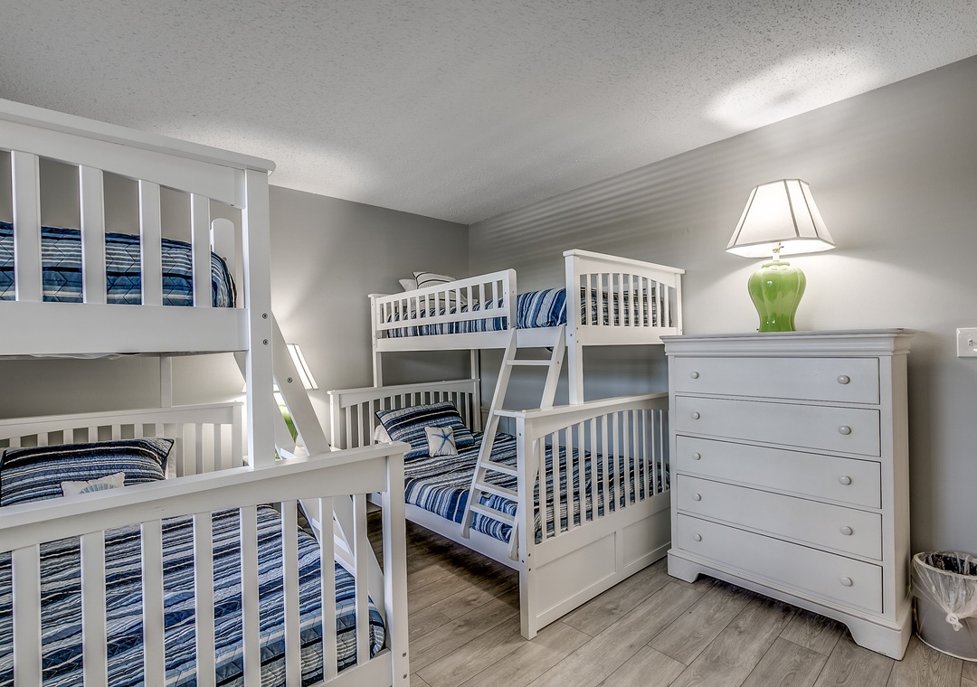 - Bedroom 4: Two bunk sets (full on bottom, twin on top)