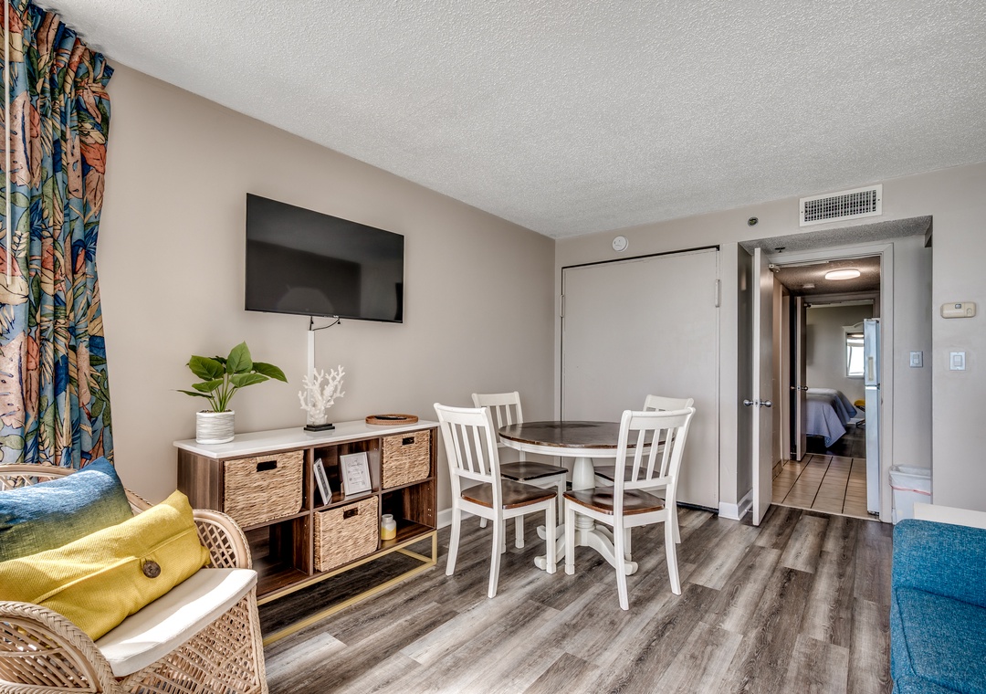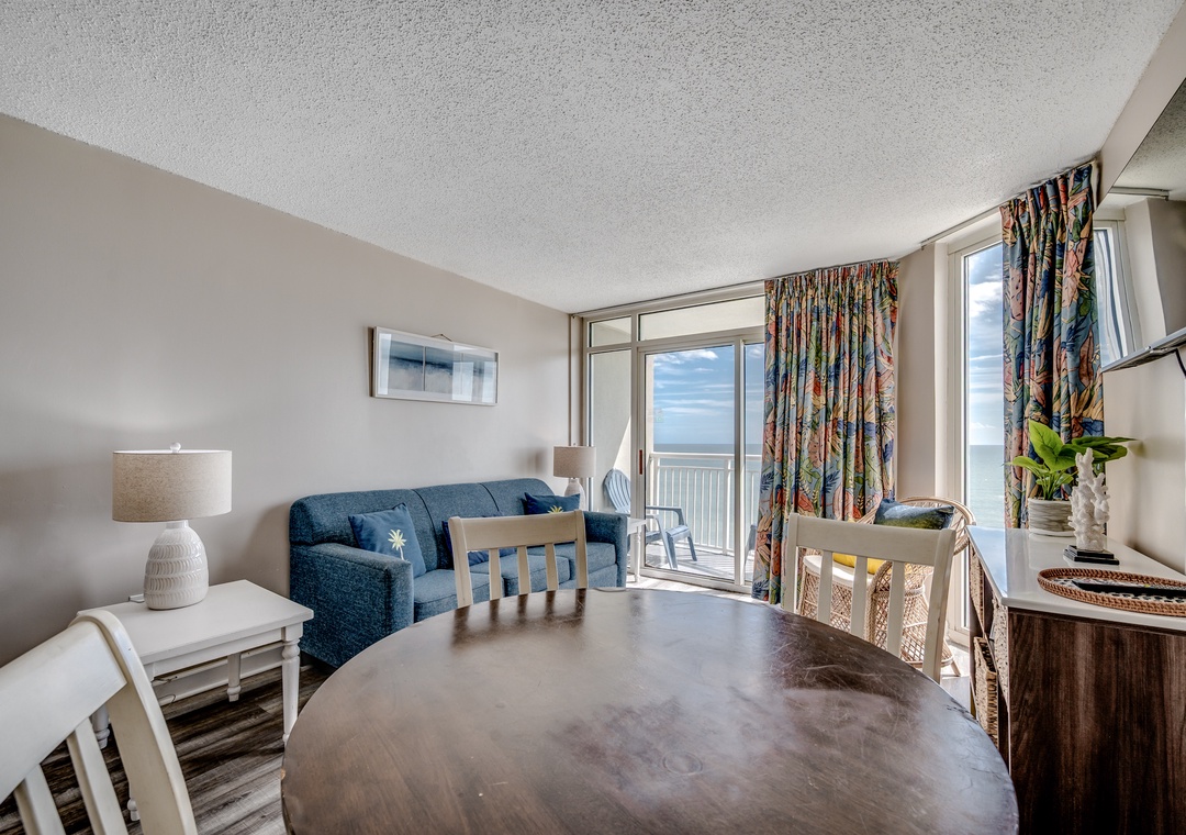 Spacious one-bedroom oceanfront condo with a private balcony and flexible sleeping for up to 4 guests. The unit includes flat-screen TVs and a fully equipped kitchen with refrigerator, coffee maker, oven/stove, toaster and microwave-ideal for easy meals between beach and pool time. Guests have access to Atlantica North and South Tower amenities, including pools, hot tubs and a lazy river, with the beach less than 150 yards away.