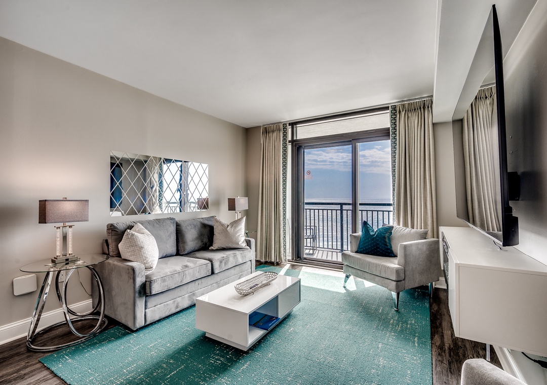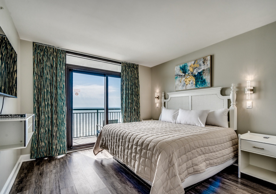 Brand new to Luxury Beach Rentals and completely remodeled, this 3 bedroom, 2 bathroom unit on the 14th floor offers beautiful views of the Atlantic Ocean. The oceanfront master bedroom has a king bed and direct access to a large oceanfront balcony. The second room offers one queen bed and the third room offers two double beds. Other features include flat screen TVs, washer and dryer, and fully equipped kitchen with granite countertops and stainless steel appliances.