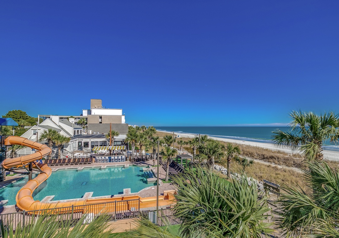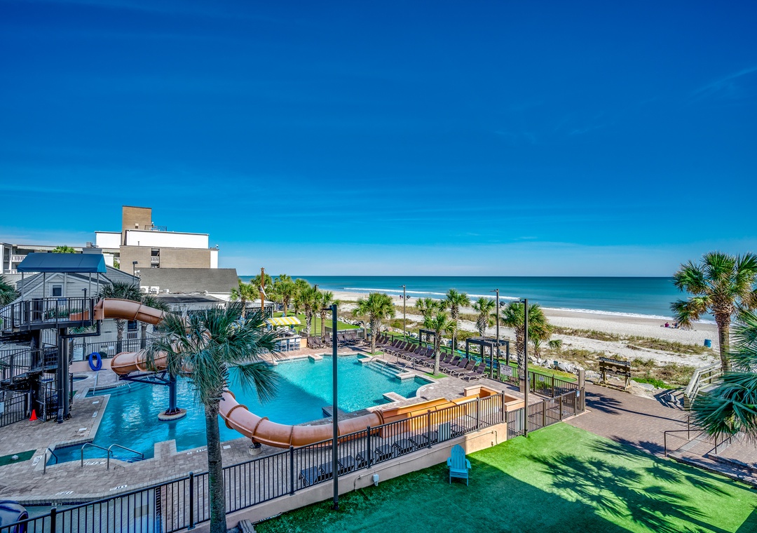 The resort is located in the heart of the Grand Strand in a quiet family oriented section of the beach. Activities on site include the indoor and outdoor pool complex which includes a lazy river, 2 pools, 4 hot tubs and children’s splash pool all overlooking the beach along with a fitness center and tanning lawn. The resort also has a Starbucks and ice cream shop onsite.