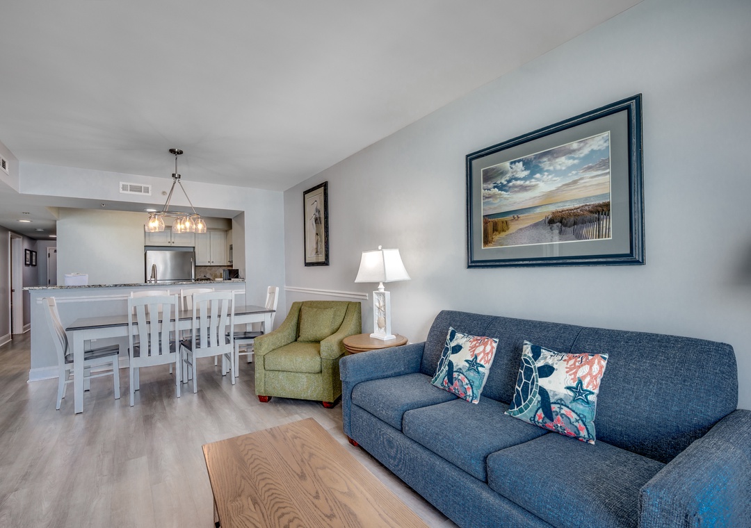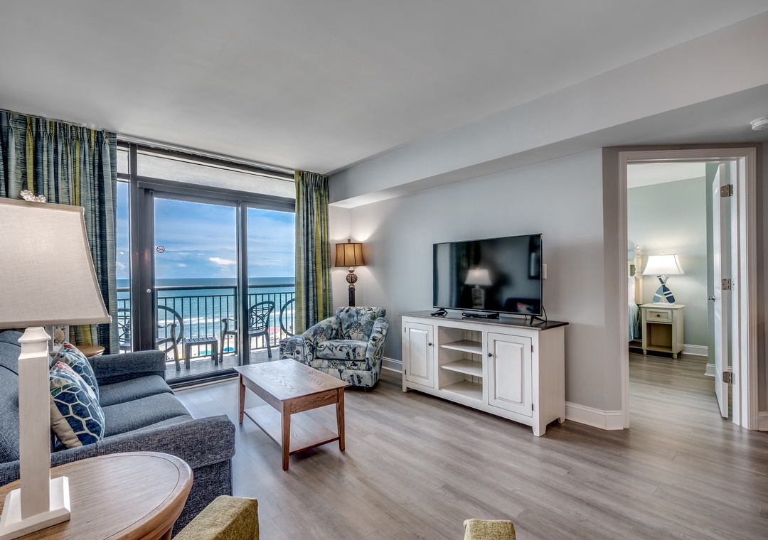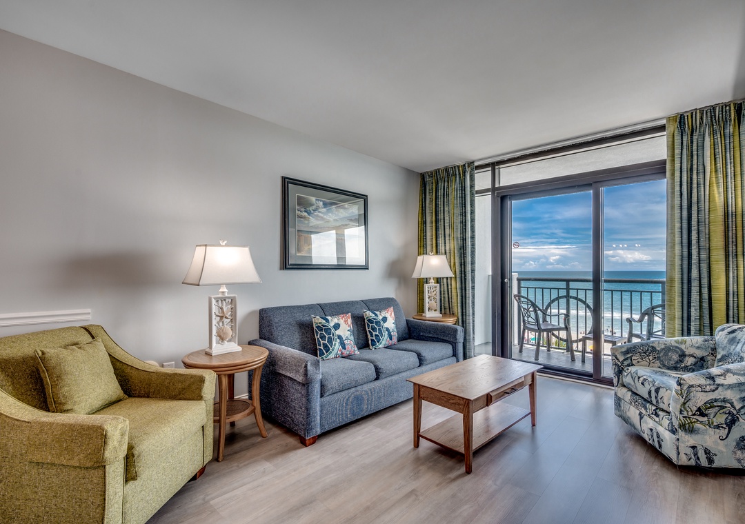 The resort is located in the heart of the Grand Strand in a quiet family oriented section of the beach. Activities on site include the indoor and outdoor pool complex which includes a lazy river, 2 pools, 4 hot tubs and children’s splash pool all overlooking the beach along with a fitness center and tanning lawn. The resort also has a Starbucks and ice cream shop onsite.