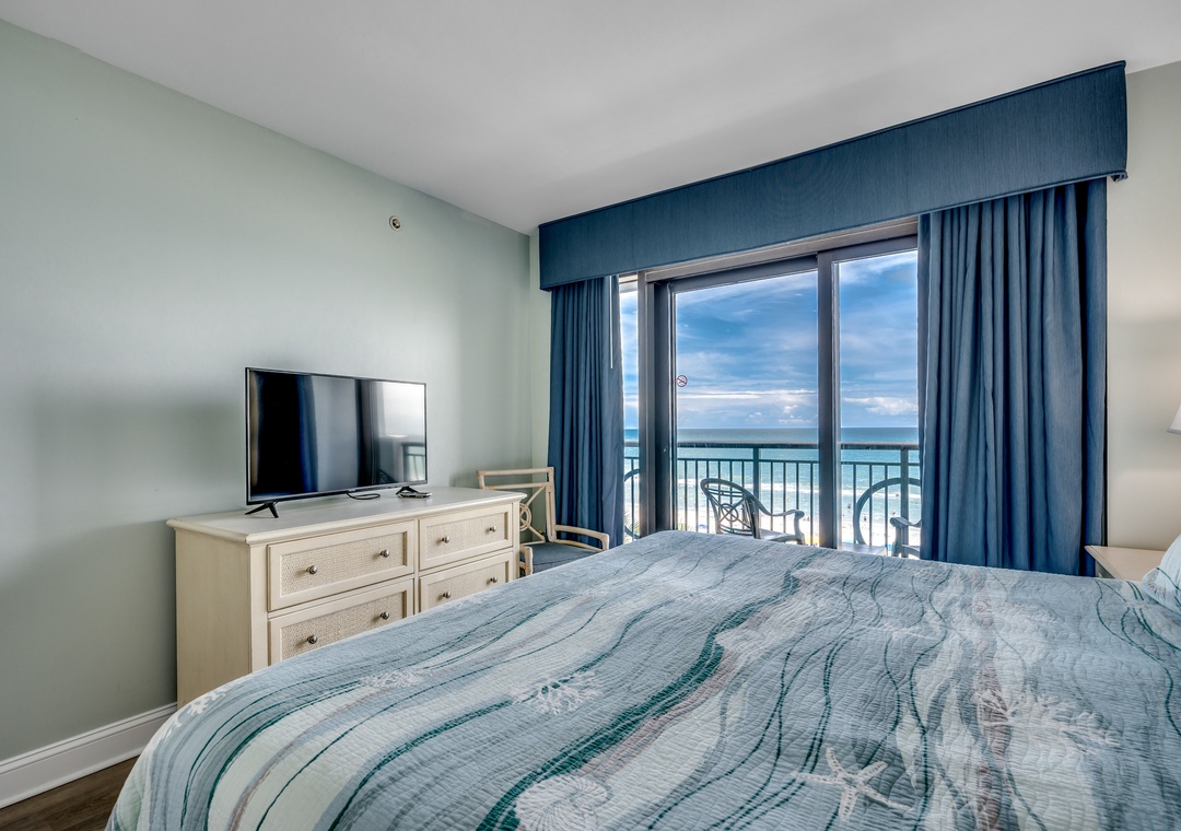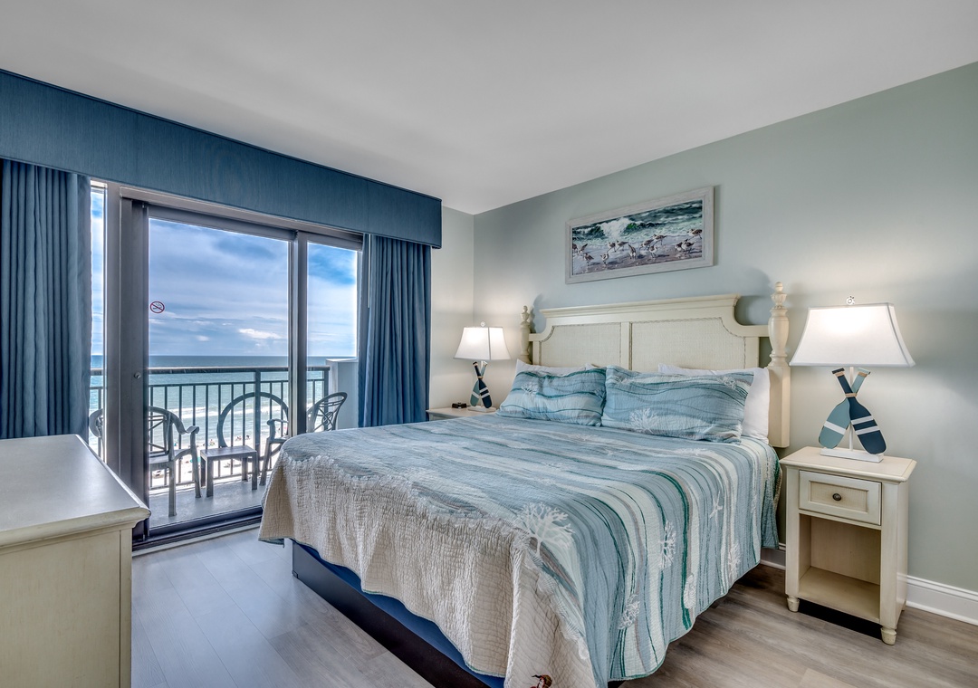 This newly remodeled, 3 bedroom condo on the 4th floor is oceanfront and offers spectacular views of the blue Atlantic. This condo offers an oceanfront master bedroom with king bed and access to the huge oceanfront balcony. The second room offers one queen bed, the third room offers two double beds. Other features include flat screen TVs, washer and dryer, and fully equipped kitchen with granite countertops.
