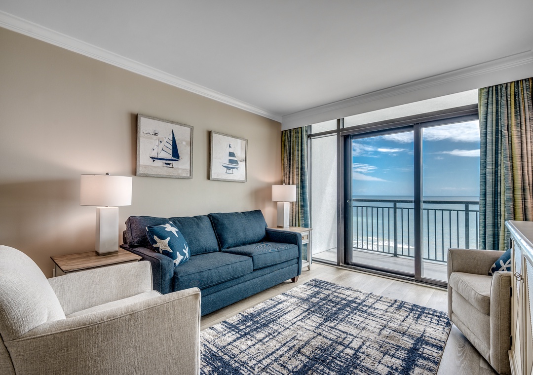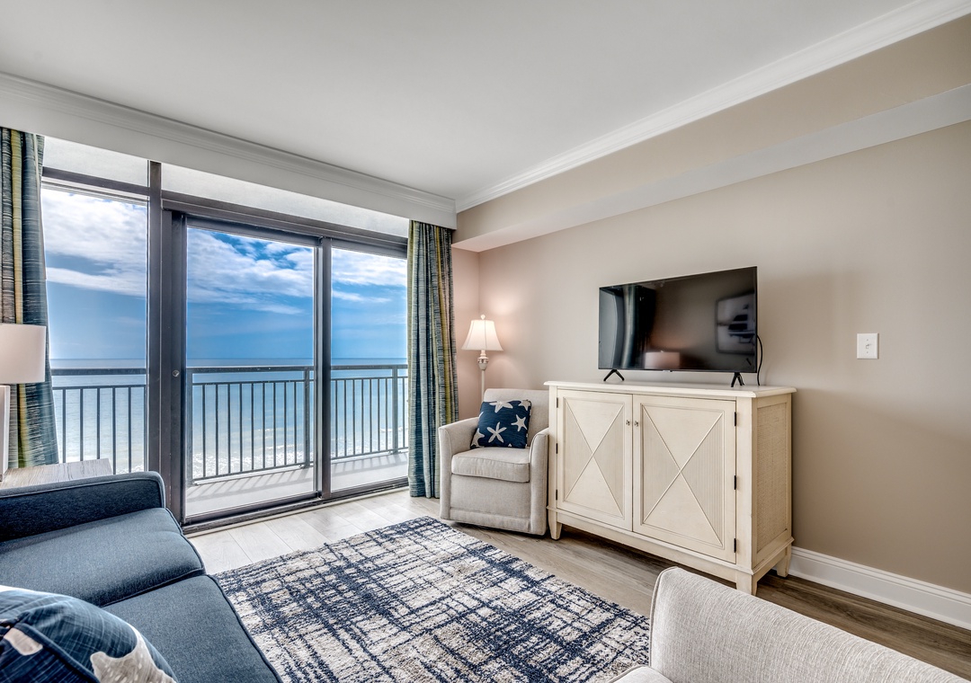 Brought to you by Luxury Beach Rentals, this 3 bedroom suite on the 8th floor is oceanfront and offers spectacular views of the blue Atlantic. This condo offers an oceanfront master bedroom with king bed and access to the huge oceanfront balcony. The second room offers one queen bed, the third room offers two double beds. Other features include flat screen TVs, washer and dryer, and fully equipped kitchen with granite countertops.