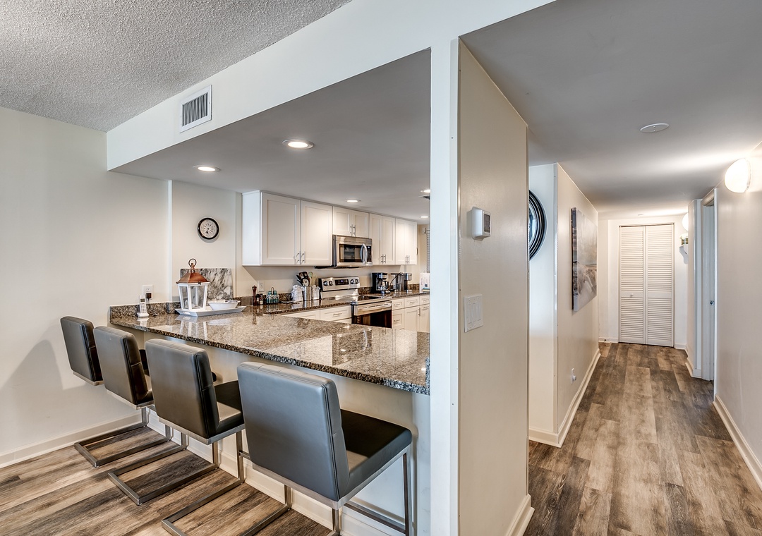 My family truly enjoyed the condo. It was centrally located to all the popular things to do but far enough away that we had peaceful nights. The rooms were clean and there was no mildew smell that some places have near the beach. I’m sure not having carpet helped that and made clean up a breeze. The kitchen had everything we needed to cook and clean with along with appliances. We did a quick shop at the food lion that was only 6 blocks away. We plan to come again and bring more family.- Reviewed On: 8/28/2021