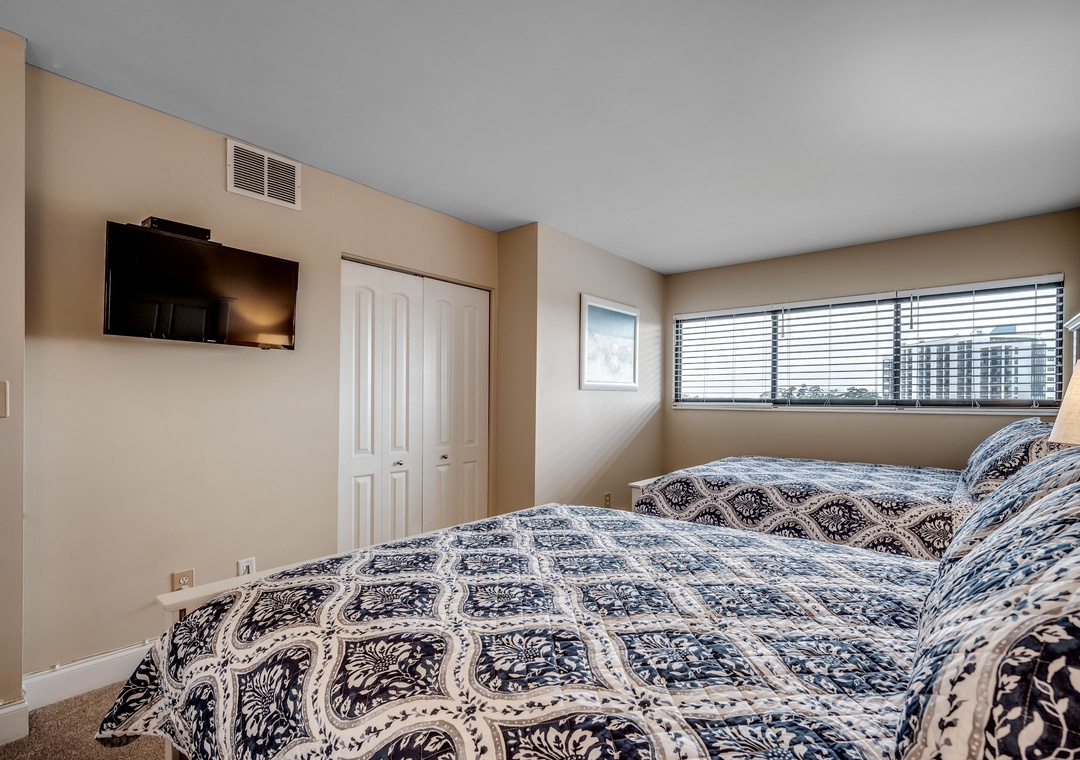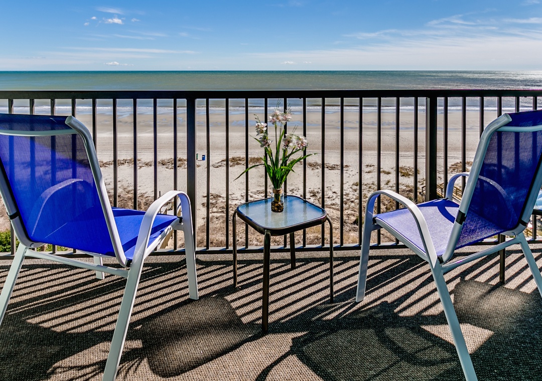 Located in the Carolina Dunes. Enjoy beautiful views of the ocean from the oversized balcony of this updated 2 bedroom 2 bathroom condo! You will feel right at home with its large open kitchen, flat screen TVs, full sized washer and dryer, spacious living room and a private balcony giving plenty of room for you and your guests to enjoy your Myrtle Beach vacation. This two bedroom condo has a king bed in the master along with full bath, second bedroom offers two queen size beds.