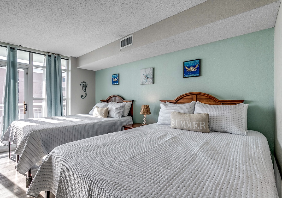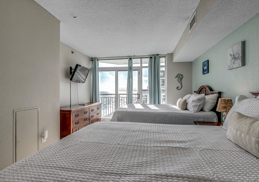Welcome to our newest addition at Luxury Beach Rentals! This 2-bedroom oceanfront penthouse in Carolinian Beach Resort is a dream getaway. It offers two well-appointed bedrooms, both with two double beds and leading to a private balcony with stunning ocean views. The condo is equipped with a washer/dryer, a fully-equipped kitchen including a stove, microwave, and dishwasher, plus high-speed WiFi. Enjoy resort amenities including a lazy river, oceanfront pool deck, direct beach access, a fitness center, and a business center. A perfect blend of comfort and convenience for your vacation!