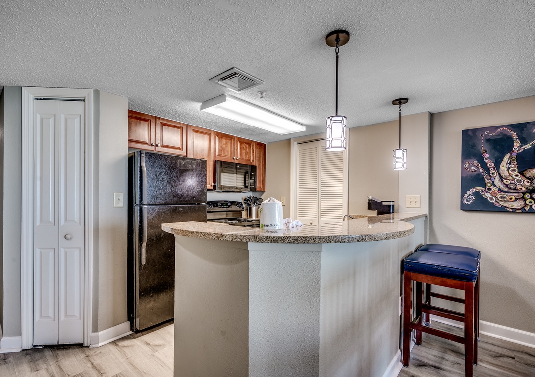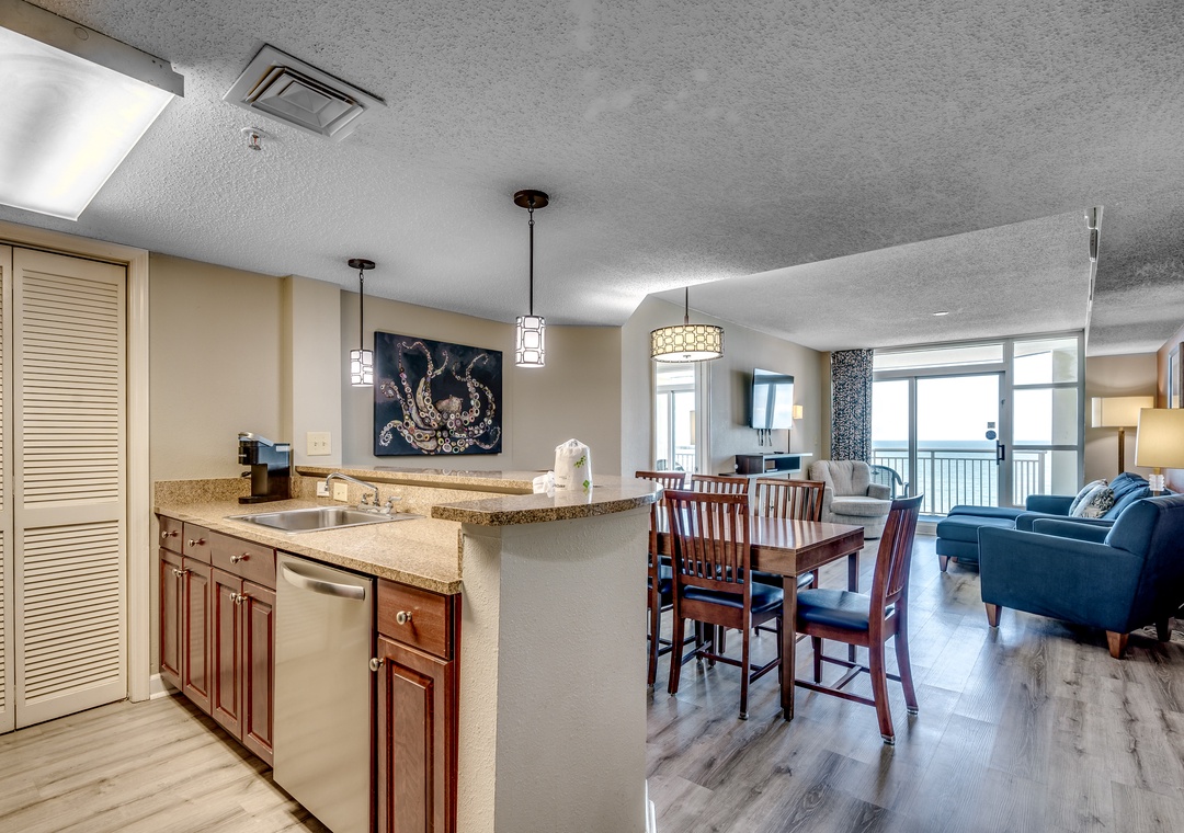 It was our first time in Myrtle Beach in January, and it was great. The water park and kids activities offer so much to do. The condo was clean and well laid out. The kitchen was on the small side, but fully stocked, and it was nice to have the large dining table. Three of the bedrooms had ocean views and balconies, but the view from the master up the coast was unbelievable. Even on the 10th floor, you could hear the ocean at night. The staggered layout of the bedrooms was also helpful for limiting noise between the rooms. The parking garage was convenient (make sure and get the cards from the front desk and get them for the kids to easily go between the two buildings), but it was nice to have the big drop off area. Do pay attention to make sure you are going to the right elevator.- Reviewed On: 1/16/2024