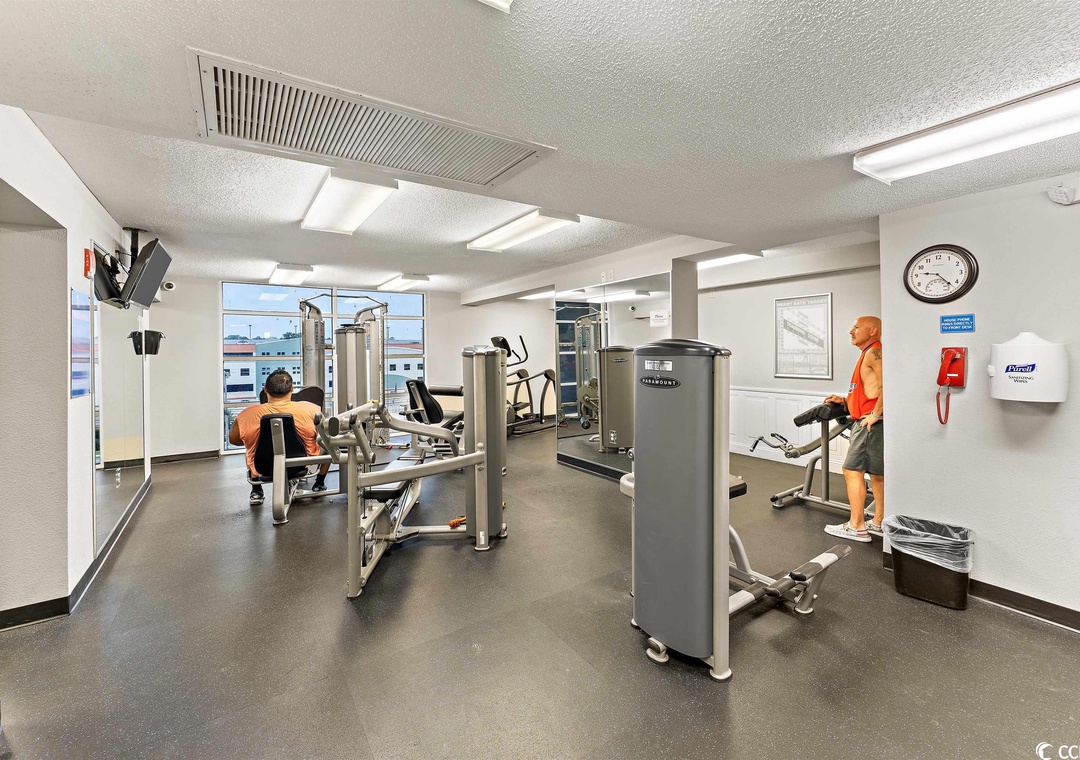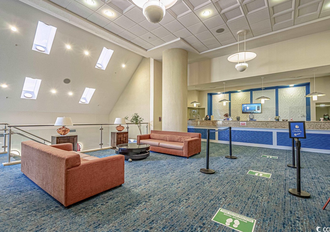 The resort is ideally situated in the exclusive north-end residential section of Myrtle Beach known as "The Golden Mile." Take advantage of unlimited access to Dunes Village Resort's large indoor heated water park that includes a 250 ft Lazy River, three Jacuzzi hot tubs, two adult-size Water Slides, a children's pool and a game room with pool tables and other games. The Resort offers a fully equipped exercise room, a full-service restaurant that includes a lunch and dinner menu, pool bar and food service and Seattle's Best breakfast/coffee facility.
