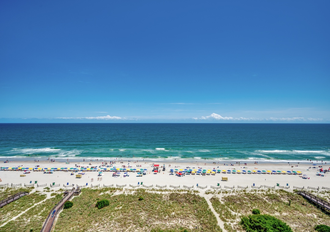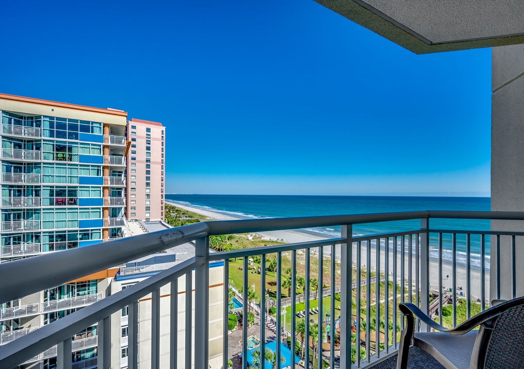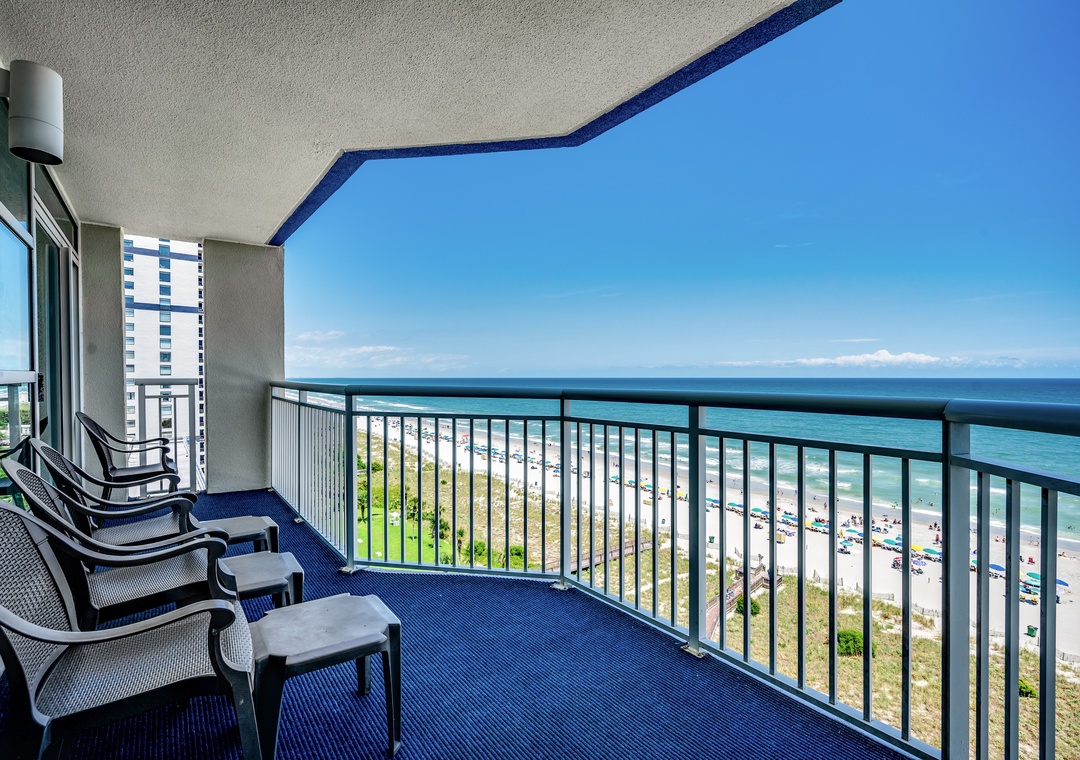 Brought to you by Luxury Beach Rentals! This is a 1660 sq. ft. 4 bedroom/3 bathroom condo, located in the Palms Tower, boasts three balconies, each with breathtaking views of the Atlantic ocean. This beautiful unit comfortably accommodates up to 12 guests and offers a full kitchen with granite counter tops complete with dishwasher, washer and dryer, free wireless internet and flat screen TVs in all bedrooms. The master bedroom features a king size bed, private bath with luxurious Jacuzzi tub and balcony access. The 2nd bedroom features 2 queen-size beds with private balcony and access to the second bathroom. The 3rd and 4th bedrooms both feature a queen-size bed with shared access to the 3rd bathroom. The 3rd bedroom also includes a private balcony with stunning ocean views.