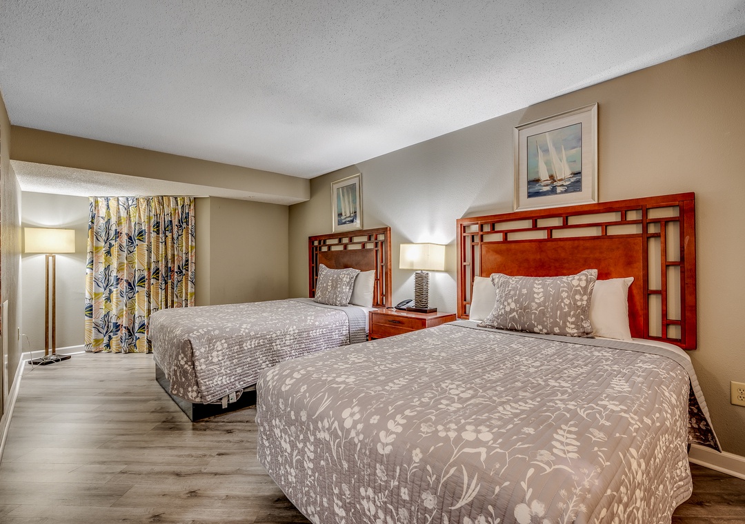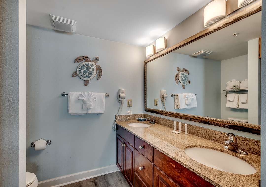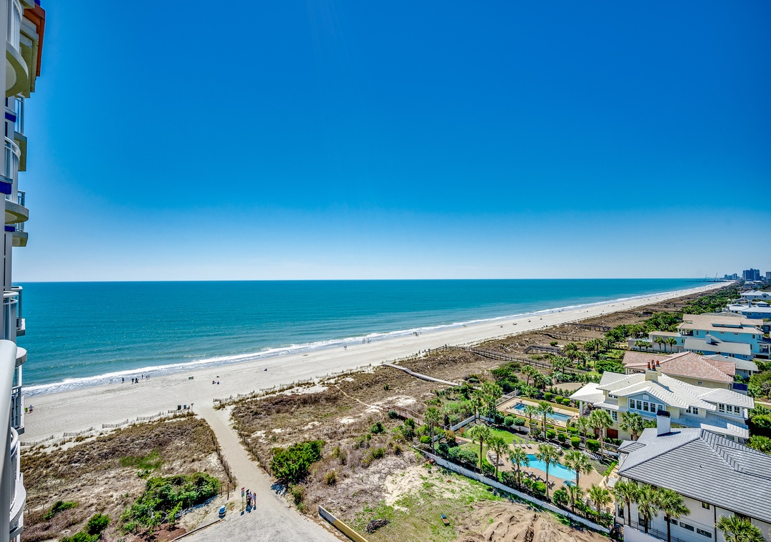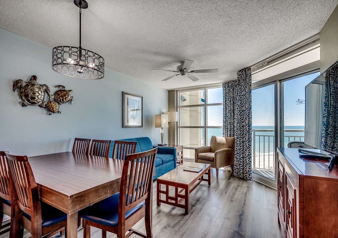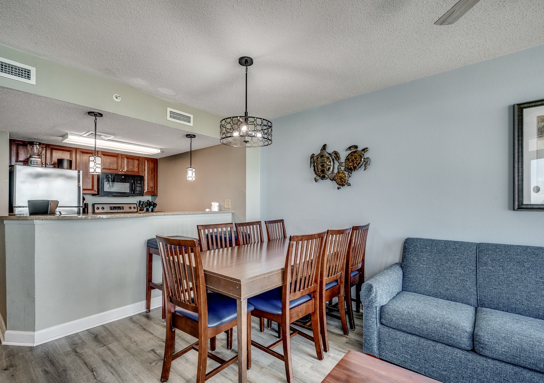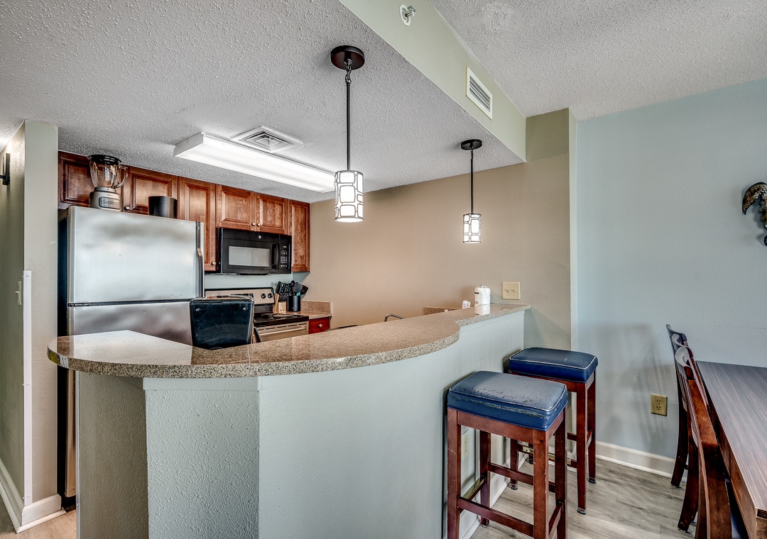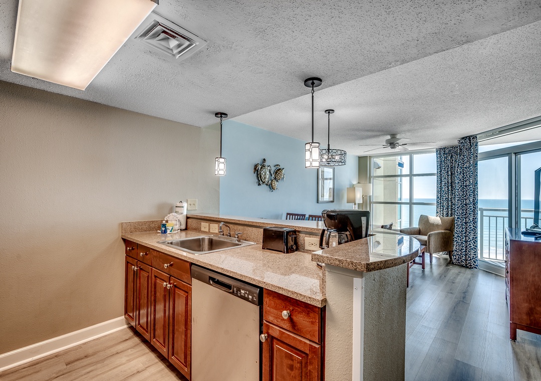 This newly remodeled 2 bedroom/2 bathroom condo spans 1048 sq. ft. and is situated in the most sought-after area of Myrtle Beach. The condo is beautifully furnished and includes a fully equipped kitchen with granite countertops, a dishwasher, and an in-unit washer and dryer. Guests can stay connected with free wireless internet and enjoy their favorite shows on the flat-screen TVs. The highlight of the condo is the stunning ocean view that can be enjoyed from the large private balcony while sipping on morning coffee or evening cocktails. The resort is located in the exclusive north-end residential section of Myrtle Beach known as "The Golden Mile", adding to the level of luxury associated with the stay at the Dunes Village Resort. Guests have unlimited access to the resort's large indoor heated water park, which includes a 250 ft Lazy River, three Jacuzzi hot tubs, two adult-size Water Slides, a children's pool, and a game room with pool tables and other games. The resort also offers a fully equipped exercise room, a full-service restaurant with lunch and dinner menus, a pool bar with food service, and a Seattle's Best breakfast/coffee facility.