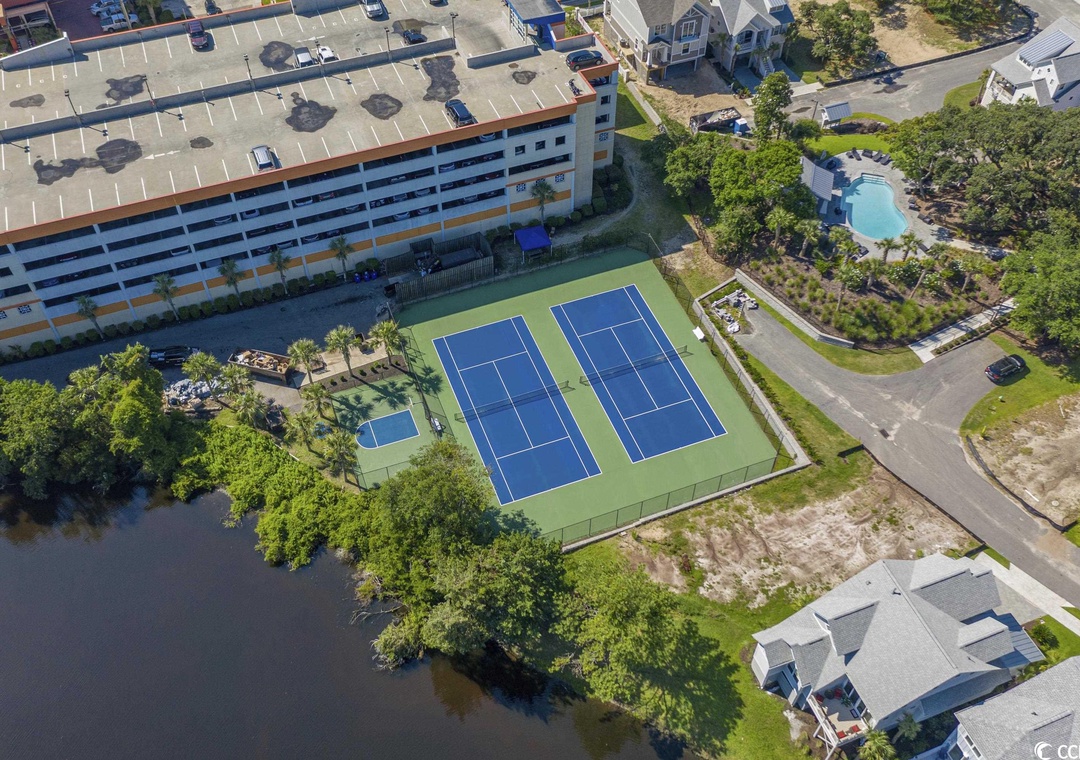 The resort is located in the exclusive north-end residential section of Myrtle Beach known as "The Golden Mile", adding to the level of luxury associated with the stay at the Dunes Village Resort. Guests have unlimited access to the resort's large indoor heated water park, which includes a 250 ft Lazy River, three Jacuzzi hot tubs, two adult-size Water Slides, a children's pool, and a game room with pool tables and other games. The resort also offers a fully equipped exercise room, a full-service restaurant with lunch and dinner menus, a pool bar with food service, and a Seattle's Best breakfast/coffee facility.