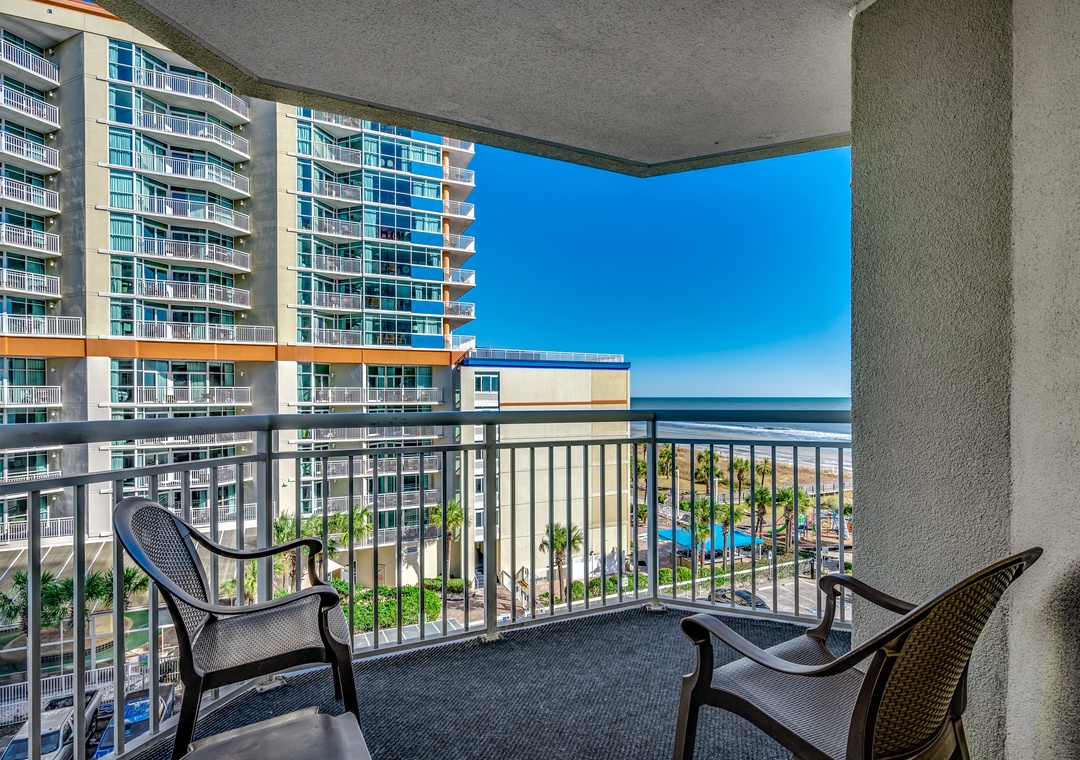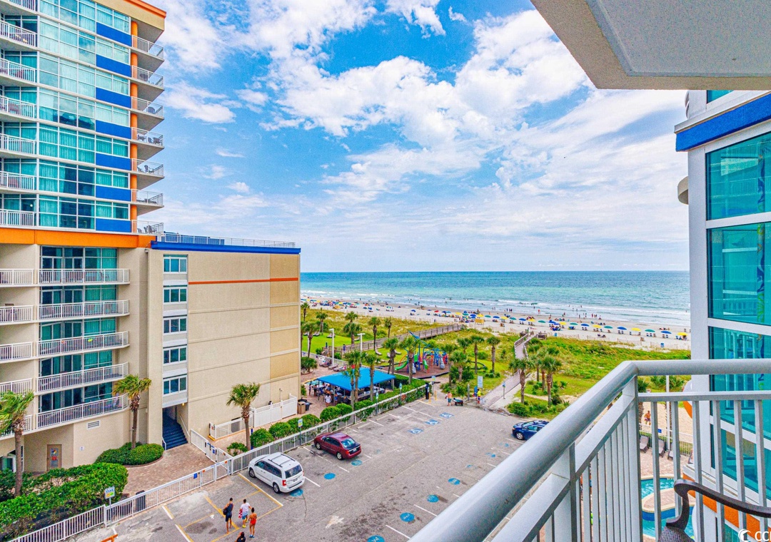 Brought to you by Luxury Beach Rentals, this 2-bedroom, 2-bathroom ocean-view condo spans 1,040 sq. ft. in Myrtle Beach’s prime location. Beautifully decorated, it features a fully equipped kitchen with granite countertops, a dishwasher, and an in-unit washer and dryer. Enjoy free Wi-Fi, flat-screen TVs, and breathtaking ocean views from the large private balcony. Located in the Palms Tower, this condo accommodates up to 10 guests. The first bedroom includes an attached bath and two queen beds, the second bedroom has two queen beds with access to the second bathroom, and the living room features a queen sofa bed.