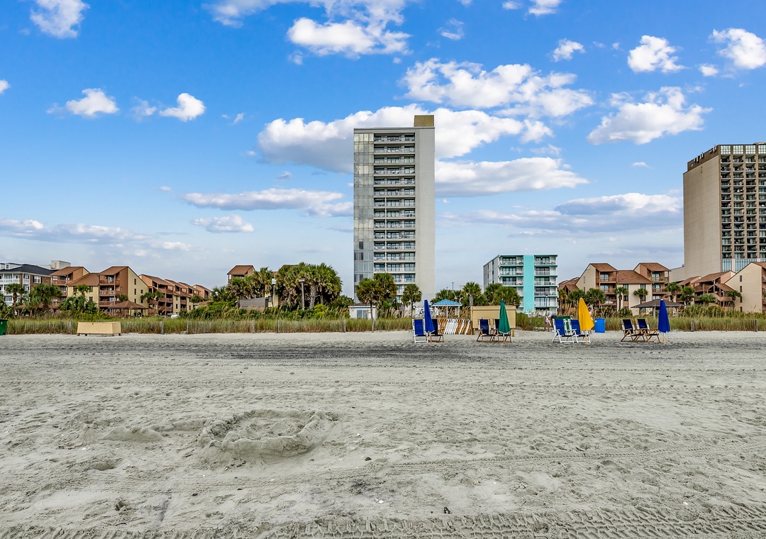 Situated in the serene northern part of Myrtle Beach along the "Golden Mile," the resort is close to popular attractions. Broadway at the Beach (3.7 mi), The Carolina Opry (3.6 mi), Barefoot Landing (8 mi), Market Common, and Ripley's Aquarium are all a short drive away. The area also offers numerous dining, golfing, and shopping options.