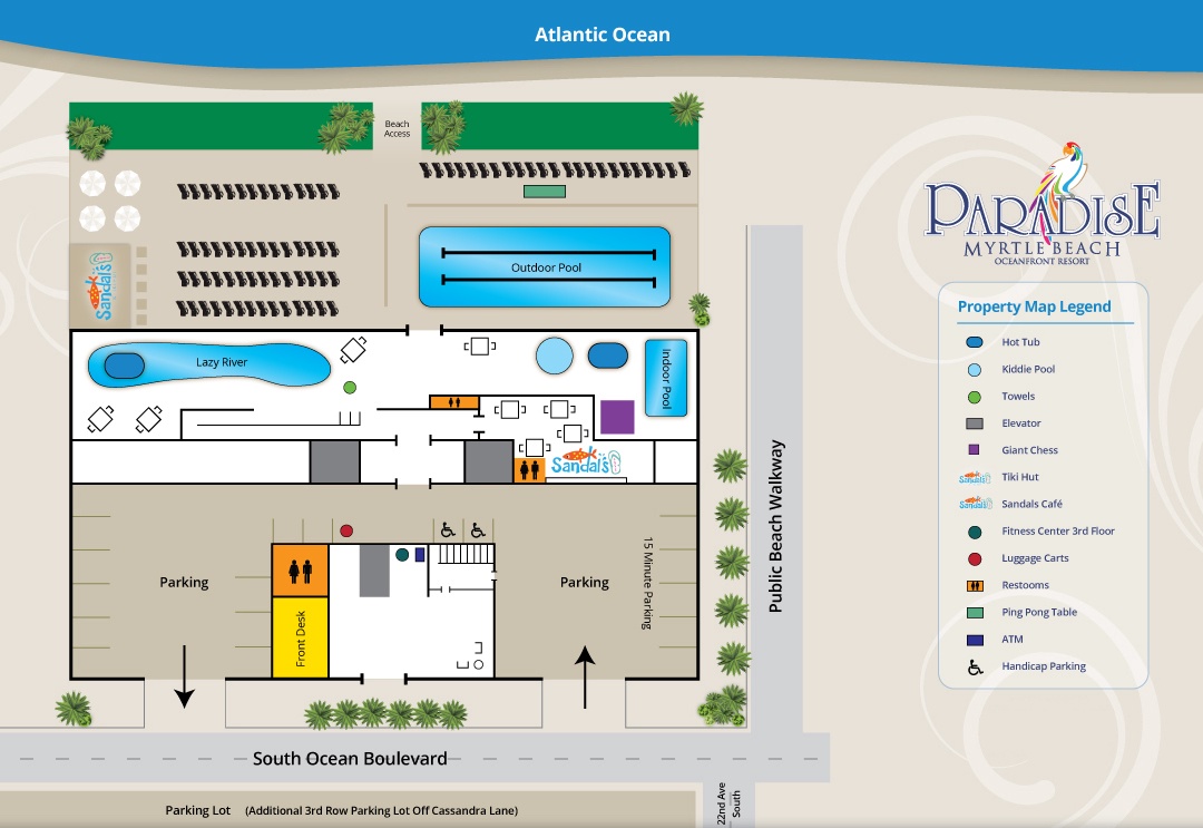 • Paradise Resort is a SMOKE-FREE property. Absolutely NO SMOKING is allowed in guest rooms, on balconies, or common areas around the property. There is a small designated area near the Tiki Hut where guests are permitted to smoke.