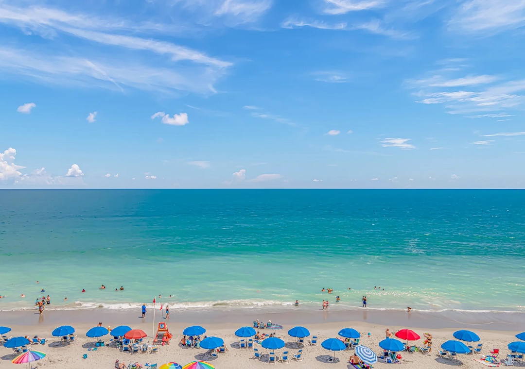 Enjoy breathtaking ocean views from this 14th-floor, 2-bedroom condo at Paradise Resort in Myrtle Beach! Perfect for families, this spacious unit comfortably accommodates up to 8 guests. The master bedroom features a king bed and ensuite bath, while the guest room offers two queen beds. The living area has a sleeper sofa, a large TV, and access to a private balcony with panoramic views.