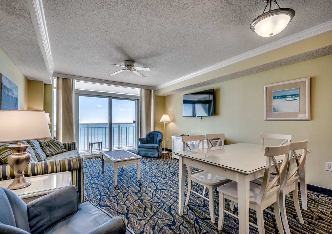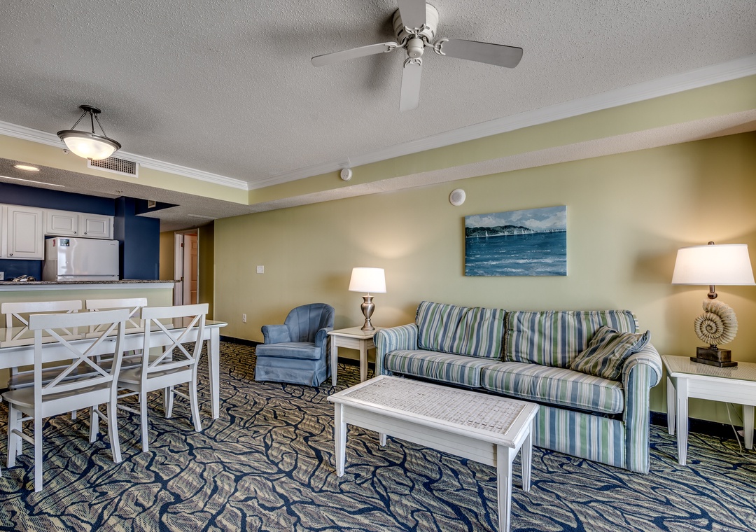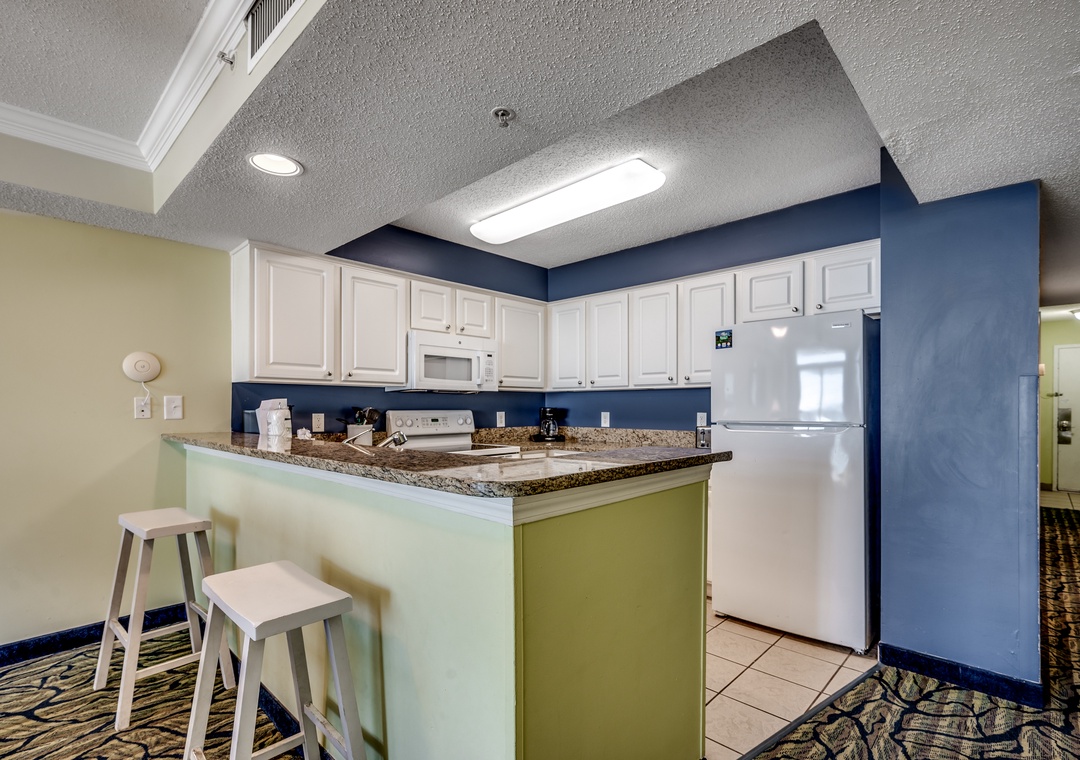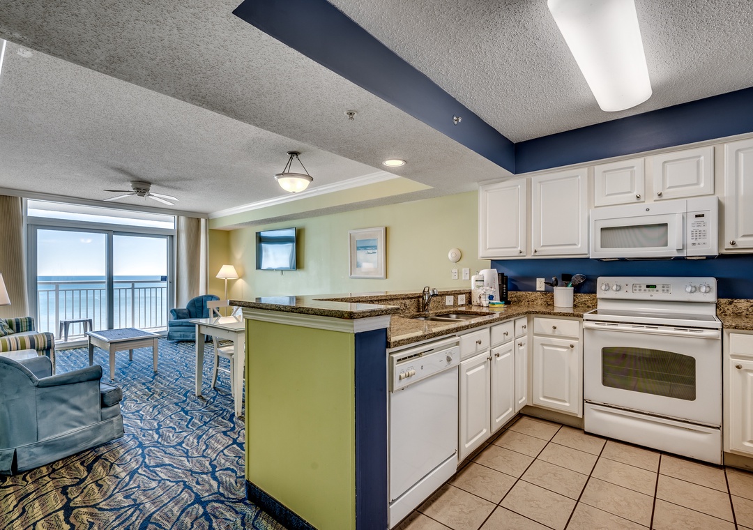 The fully equipped kitchen includes all major appliances, cookware, and small essentials like a coffee maker. Enjoy keyless entry, free Wi-Fi, and easy access to Myrtle Beach’s top attractions and restaurants. Plus, you’ll have access to the resort’s pools, lazy river, and hot tubs.