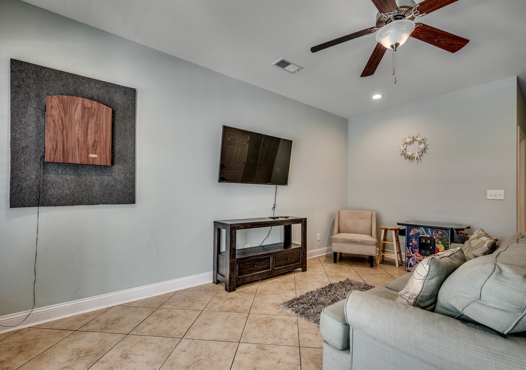 "Paradise Breeze" is available through Luxury Beach Rentals, completed in 2018 this beautiful three story beach home offers 5 bedrooms & 5 bathrooms, a first floor living room and game room, elevator, granite counters in kitchen, tile floors and so much more. Tray ceilings, paneled interior doors and crown molding accent the interior of this mint condition beach house. The upstairs deck and bedroom feature an ocean view. This home offers three covered patios and the top floor patio offers spectacular sunrises which is the perfect spot for your morning coffee. The first floor/game room features an arcade style system with over 400 classic games (ex Pacman Donky Kong, Space Invaders, Pinball, Etc), talking dart board , and a round poker table/play pool combo for the entertainment of our guests (located off the living room). Reserve your vacation now and be one of the first families to stay in this exclusive home.
