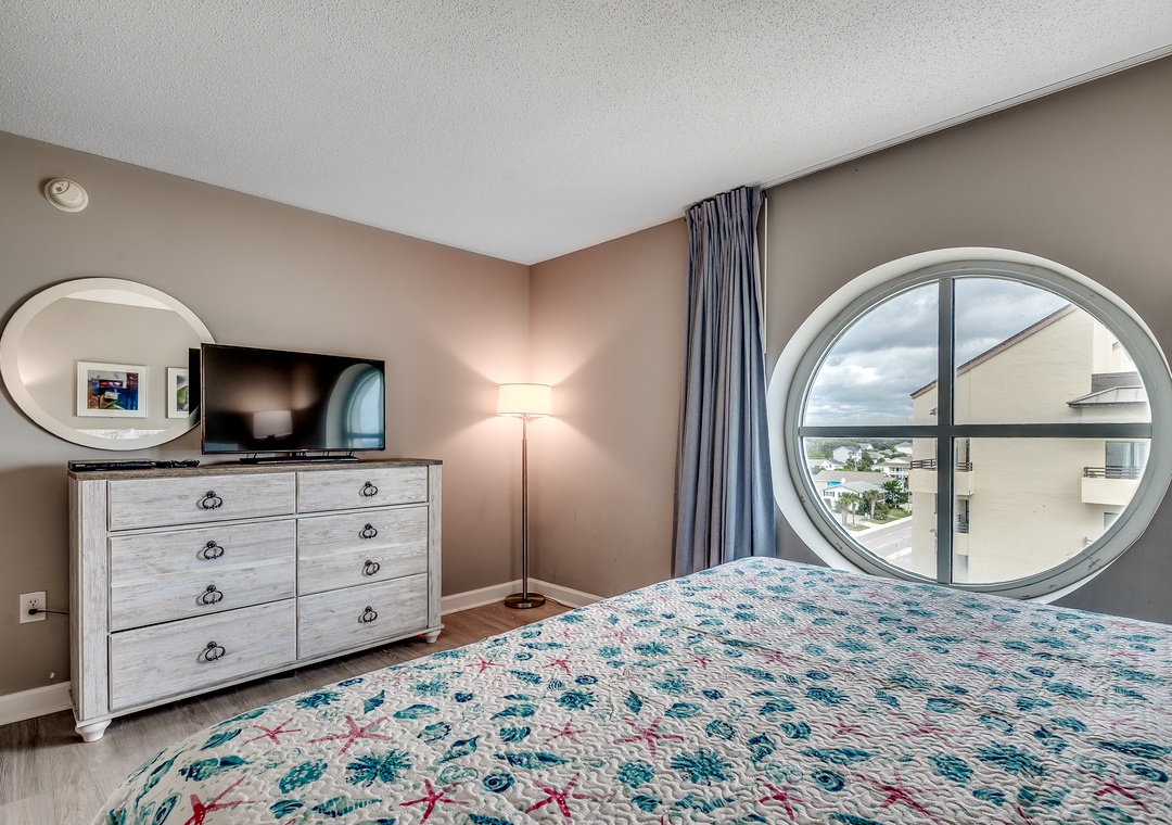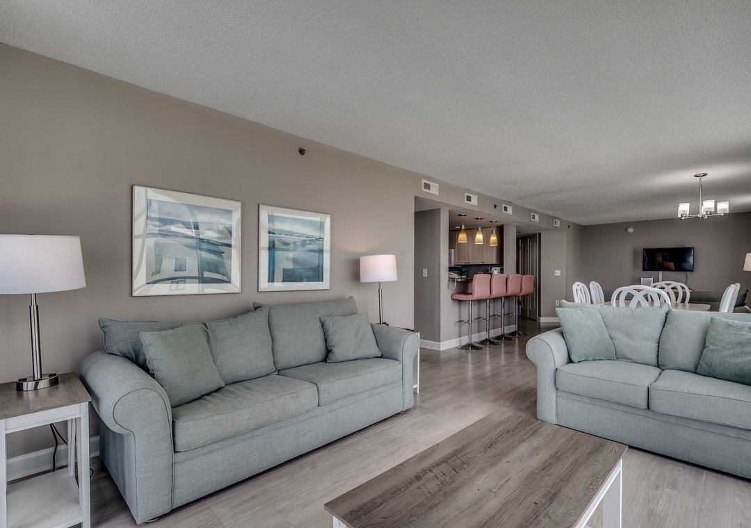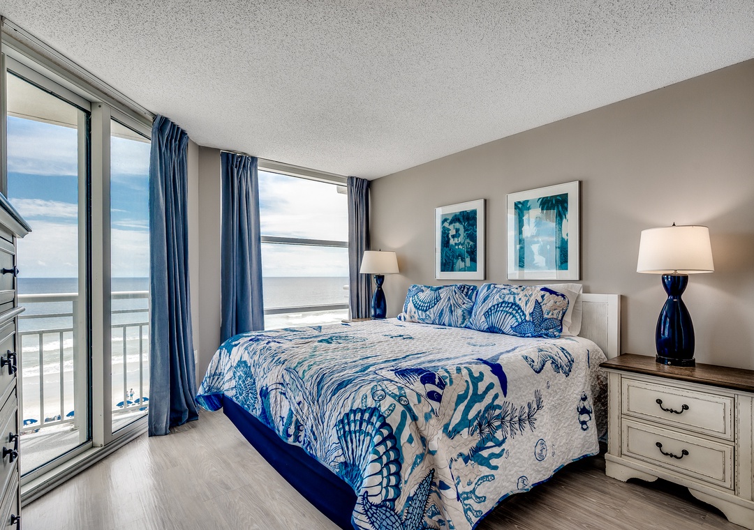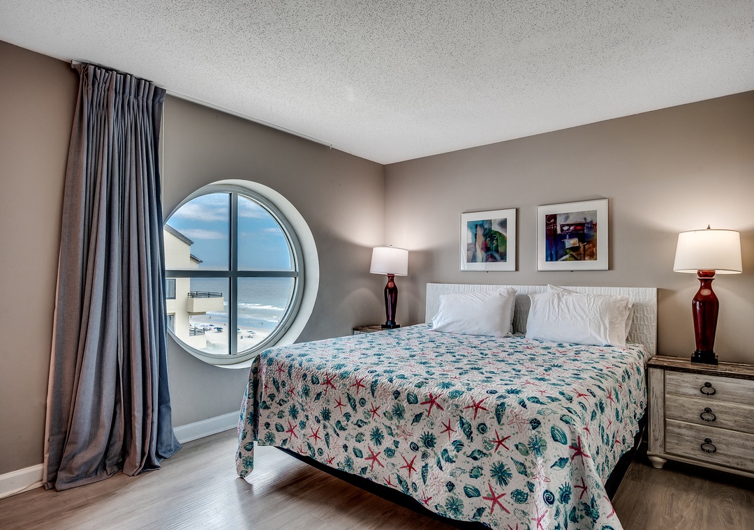 Brought to you by Luxury Beach Rentals! This stunning unit features floor-to-ceiling windows in the living and dining area, giving you panoramic views of the ocean and coastline right from your couch. The master suite offers direct balcony access and stunning ocean views through floor-to-ceiling windows, along with a luxurious master bath featuring an oversized jetted tub. The second bedroom includes a king-sized bed and a unique porthole window that perfectly frames the coastline, while the third bedroom offers two queen-sized beds and an en-suite bath. The spacious living room also provides additional sleeping options with two sleeper sofas, making this unit ideal for families or groups. The open-concept living and dining area flows into a fully equipped kitchen with granite countertops, perfect for cooking up a meal after a day at the beach.