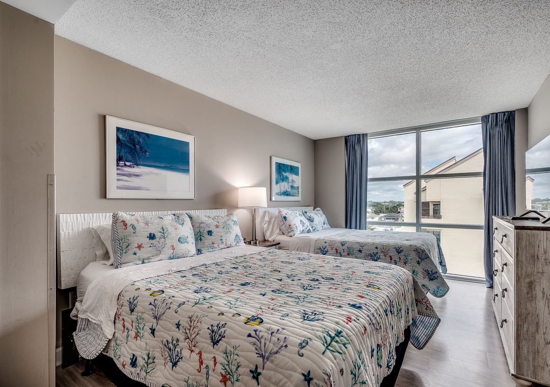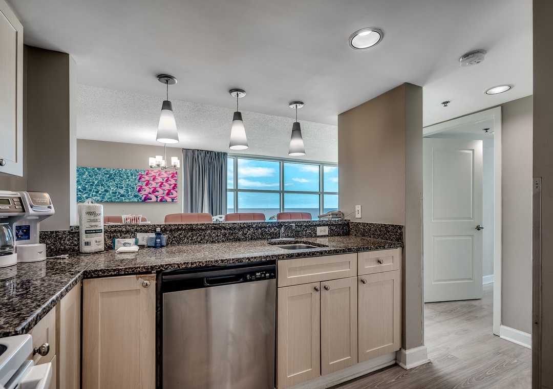 The location and the ocean view were amazing. The unit is spacious although the photos online made it look a little bit bigger than it actually was. Comfy cute furnishings. Mattresses and pillows were soft and comfortable. We did not use the sleeper sofa. I did also see a pack and play in one of the bedrooms. That would be nice if you had a little one. There were also beach chairs and umbrellas in the laundry area. The kitchen and the bathrooms could use updating as well as cleaning. The pool, lazy river, and hot tub was kept clean. It was nice having televisions in each room. You could get free DVD rentals from the office. They did offer a Continental breakfast on the sixth floor that was basic and unimpressive.- Posted: 9/13/2025