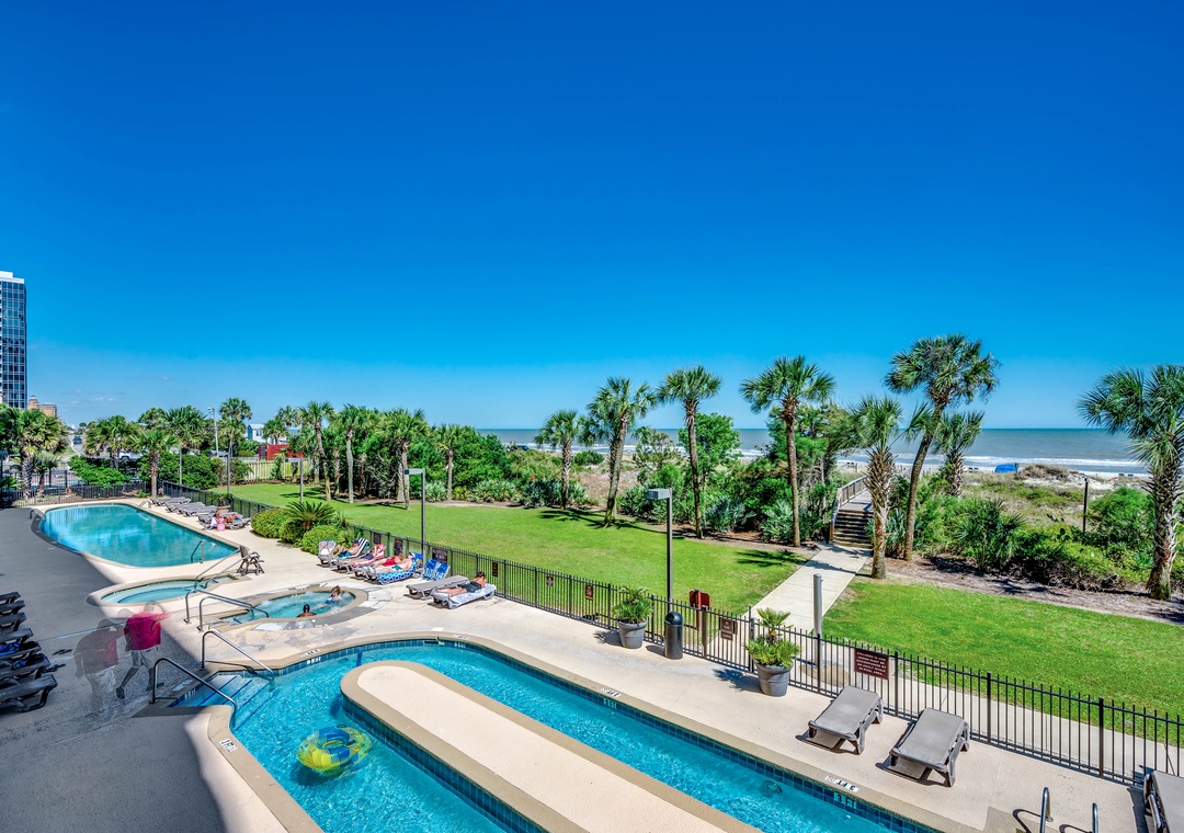 The resort is located in the heart of the Grand Strand in a quiet family oriented section of the beach. Activities onsite include the indoor and outdoor pool complex which includes a lazy river, 2 pools, 4 hot tubs and children’s splash pool all overlooking the beach along with a fitness center and tanning lawn.
