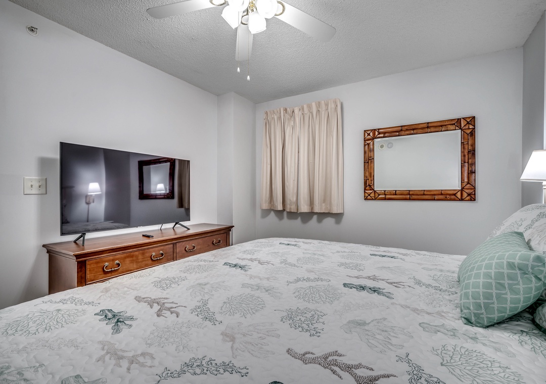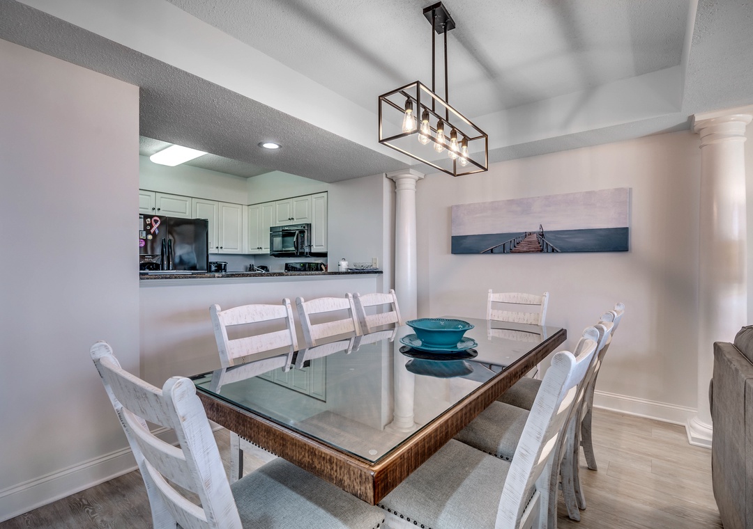 Staying here was a great experience! The condo was very clean and felt new and updated and had cute decor. The condo was also a great size - we stayed with our adult kids and their partners and the layout allowed for privacy for each couple. The kitchen was very well-stocked, we especially loved the great selection of tumblers to use at the pool. The location is a bit away from the concentrated high rises, so the beach is not crowded and umbrella/chair rentals are available right in front. Pool and lazy river area were clean and well-kept with easy beach access. The condo contained some basic beach supplies and coolers. I have stayed in many places in Myrtle Beach and would rate this among the best condos we have stayed! The only tiny downside is there isn't a restaurant or bar in easy walking distance, so we stayed stocked up in our condo.- Posted: 8/5/2024