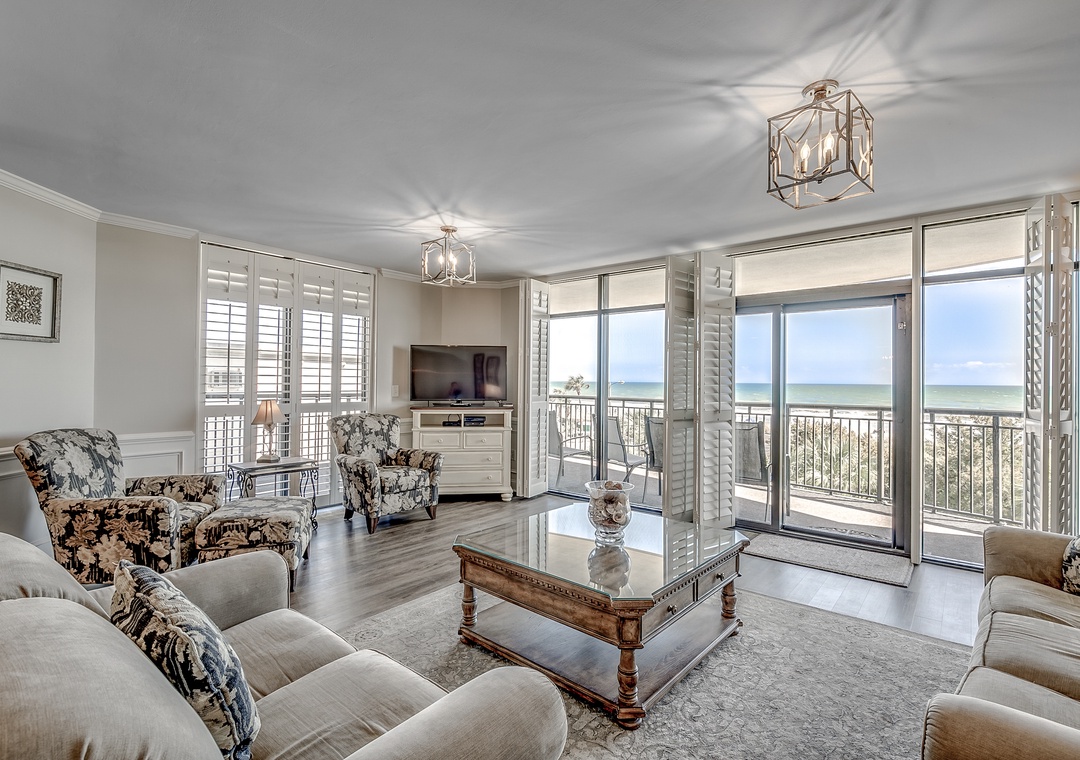 Available by Luxury Beach Rentals, the resort is located in the heart of the Grand Strand in a quite family oriented section of the beach. This 4 bedroom suite on the 3rd floor is oceanfront and offers spectacular views of the blue Atlantic. This condo offers an oceanfront master bedroom with king bed and access to the huge oceanfront wrap around balcony. The master bath offers granite counter tops, double vanities, a large shower and a walk-in closet as well as tile flooring. The second room offers one queen bed, the third room offers two twin beds, and fourth bedroom offers two queen beds. Other features include smartTVs in all rooms, full sized washer and dryer, and fully equipped kitchen with granite countertops, this condo creates a large and spacious stay for you and your guests. Activities on site include the indoor and outdoor pool complex which includes a lazy river, hot tubs and children’s splash pool all overlooking the beach along with a fitness center and tanning lawn.
