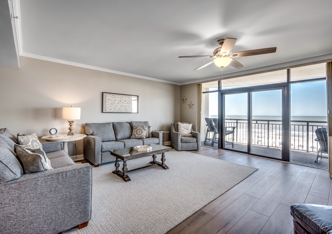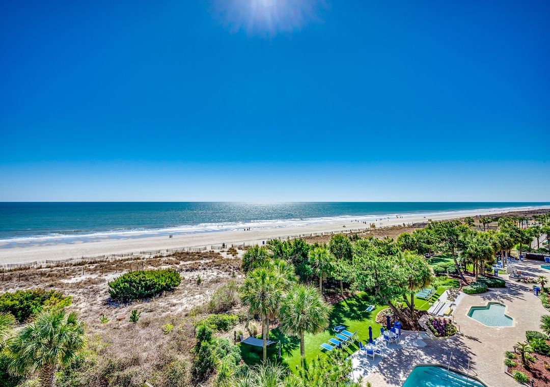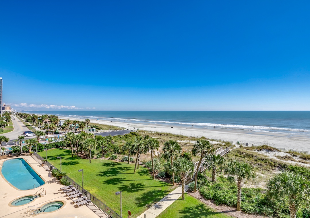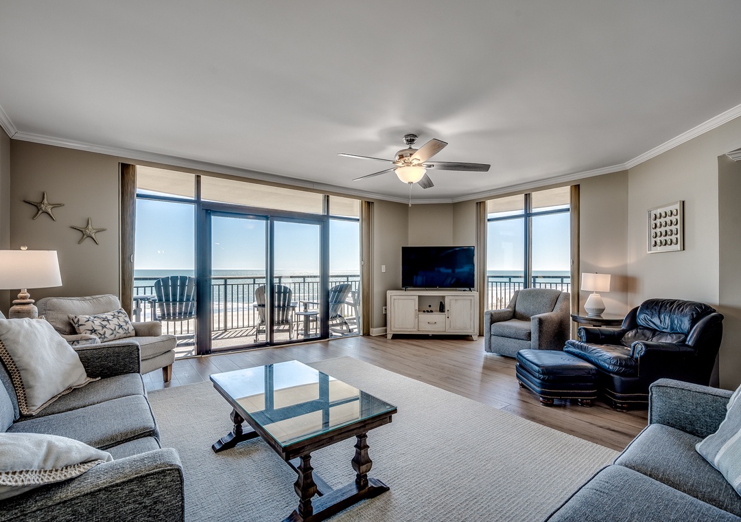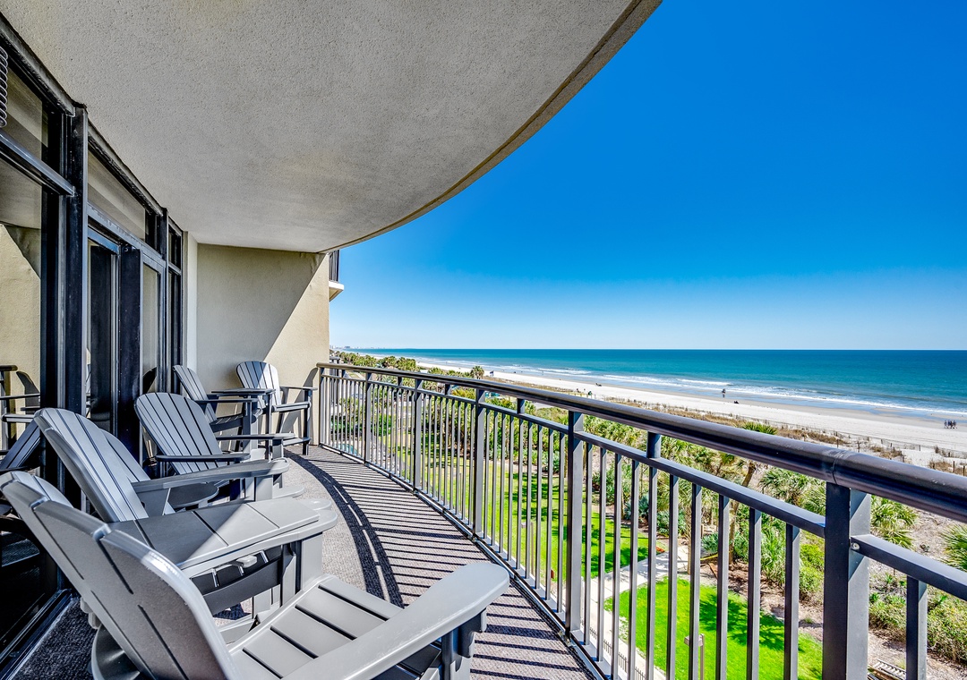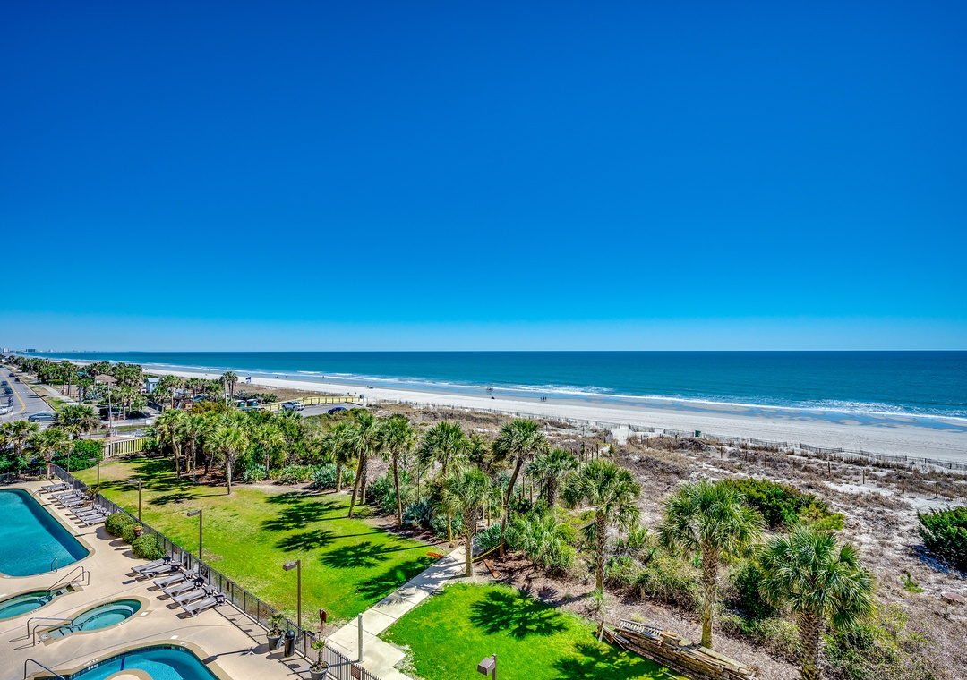 Available by Luxury Beach Rentals. This 5 bedroom suite on the 5th floor is oceanfront and offers spectacular views of the blue Atlantic. This condo offers an oceanfront master bedroom with a king bed and access to the huge oceanfront wrap around balcony. The master bath offers granite counter tops, double vanities, a large Jacuzzi tub, a separate shower and a walk-in closet as well as tile flooring. The second and third bedroom offer king beds, the fourth bedroom offers a queen bed and 3 twin beds and the fifth bedroom offers one king bed. Other features include a new sleeper sofa in the living room, smart TVs in all rooms, full sized washer and dryer, and fully equipped kitchen with granite countertops. Activities on site include the indoor and outdoor pool complex which includes a lazy river, 2 pools, 4 hot tubs and children's splash pool all overlooking the beach along with a fitness center and tanning lawn.
