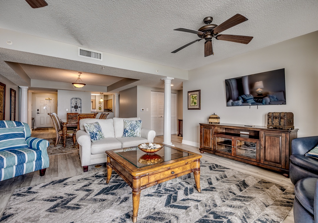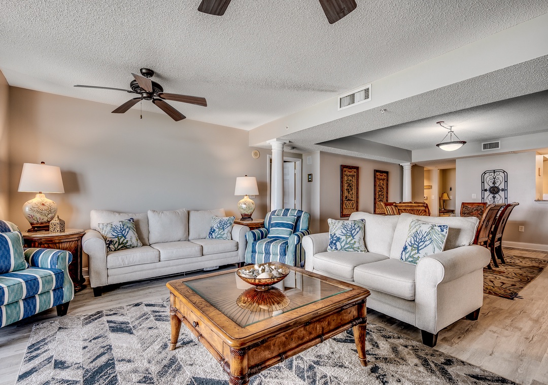 Due to the make-up of our group of friends, it was important to have four bedrooms with four baths (not many units of this size always have that fourth bath). The space was perfect and the ocean view was spectacular!! When we had problems with the TV reception and ice maker, management sent help very quickly. The only complaint was the kitchen wasn't equipped with enough eating utensils for more than one meal at the time, no pitchers for tea or lemonade, and the hot mats were so very old and soiled. For a unit of this size that accommodates this many guests, the kitchen could really use more cooking and serving pieces - but we hope to stay there again next year. We will just bring more bags of ice and not plan to cook quite so much. The location was great and was perfect for our group coming in from three different locations.- Reviewed On: 10/22/2022