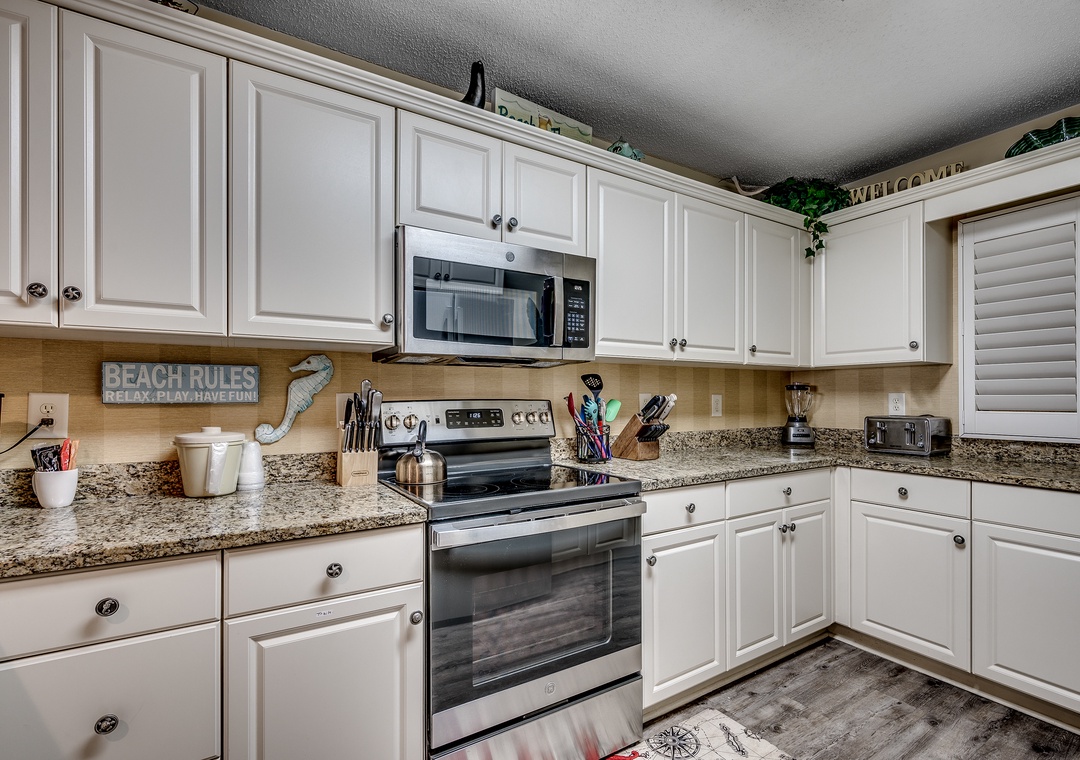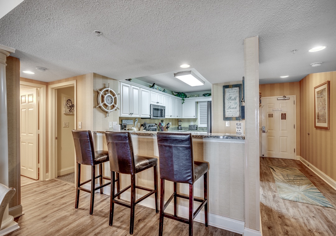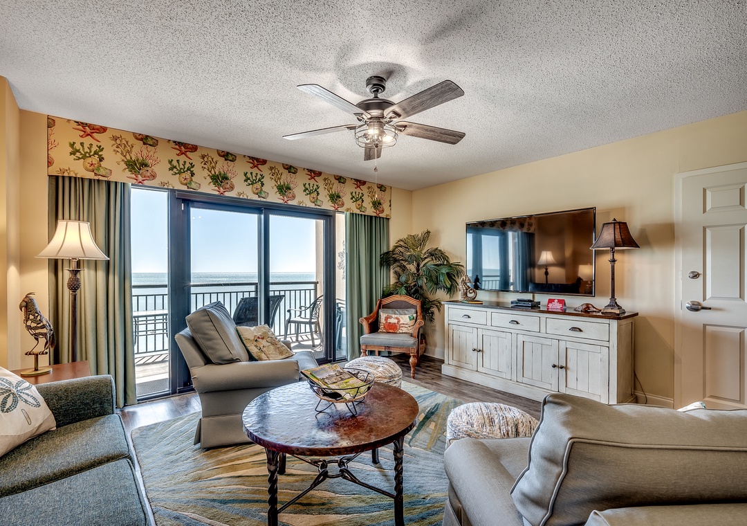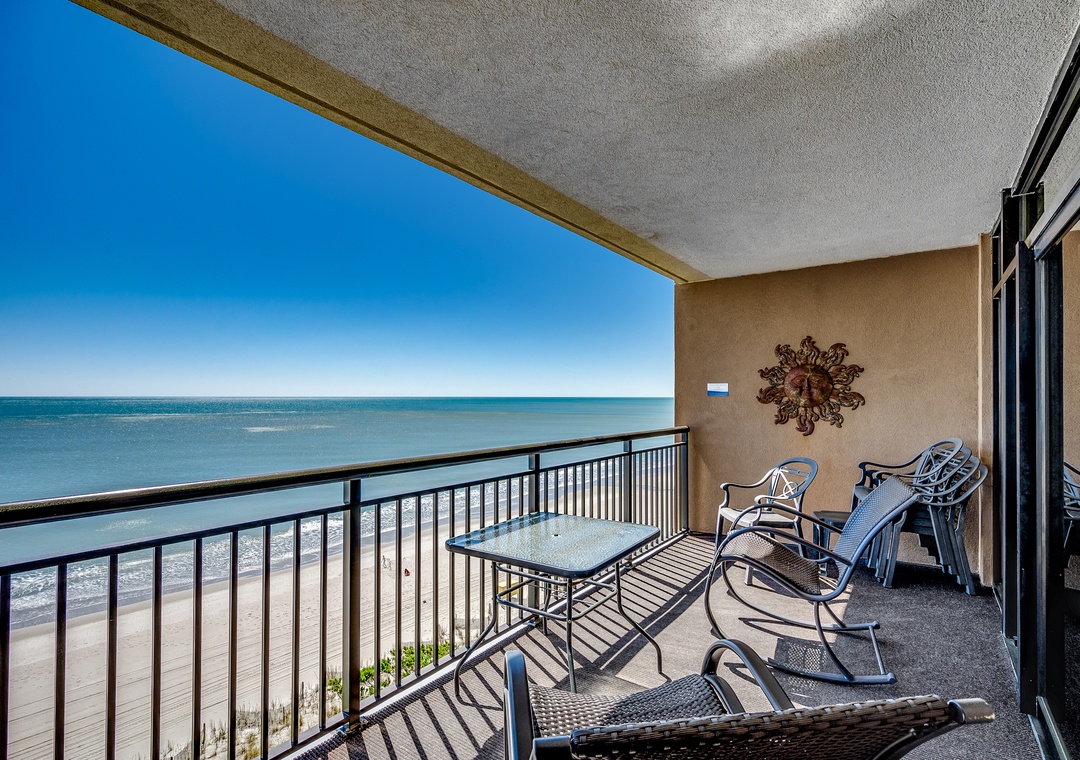 Offered by Luxury Beach Rentals, this 7th floor 3-bedroom, 3-bathroom condo provides direct views of the Atlantic Ocean. The primary bedroom includes a king bed, flat-screen TV, balcony access and adjoining bathroom with granite countertops, double vanities, Jacuzzi tub, and walk-in shower. The second bedroom has a king bed that can be converted into two twin beds upon request and the third bedroom offers two double beds. The condo also includes a sleeper sofa in the living room, a fully equipped kitchen with granite countertops and a full-sized washer and dryer.