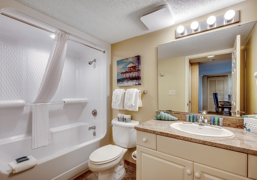 The condo was wonderful. Very clean, very spacious and very nicely decorated. It had a very comfortable and homey feel to it. The three bathrooms were a big plus. Everyone had their own space. Waking up every morning and going out on the patio to soak up the sunshine and beautiful weather was amazing. The pools and grounds were fantastic. Parking ramp was a little tight sometimes, but worth it for all the rest of the amenities. Myrtle Beach surprised us with just how much there is to see and do. The kids were never bored. My personal favorite was the boardwalk. This was our first time doing a vacation rental. It won't be our last. I would strongly recommend this condo to anyone, whether it be couples sharing a vacation or an entire family. It is the perfect set-up. It takes your vacation to a whole new level. You won't regret it.- Posted: 4/3/2017