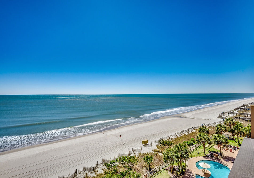 The resort is located in a quiet, family-friendly section of the Grand Strand and includes a variety of amenities. Guests can dine at the award-winning Cypress Room, which serves breakfast and dinner daily, with seasonal lunch service available at the poolside bar. Resort amenities include indoor and outdoor pools, hot tubs, a lazy river, children’s splash pool, fitness center, and an oceanfront tanning lawn.