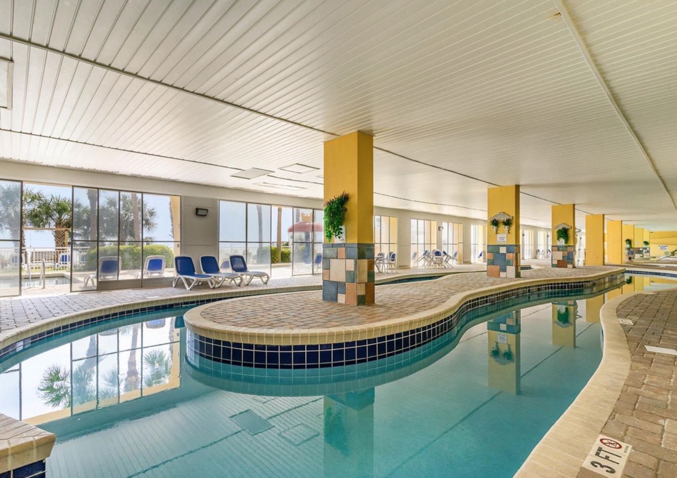 The resort’s amenities create a peaceful yet engaging vacation experience for all ages. The on-site poolside bar and coffee café provide refreshments throughout the day, while the fitness center and hammocks give guests space to stay active or relax. Families appreciate the kiddie pools and convenient indoor pool area, along with the secured parking garage and 24-hour front desk service. Camelot by the Sea is also close to SkyWheel Myrtle Beach, shops, and dining along the Boardwalk, making it one of the most well-located and comfortable oceanfront stays on the Grand Strand.