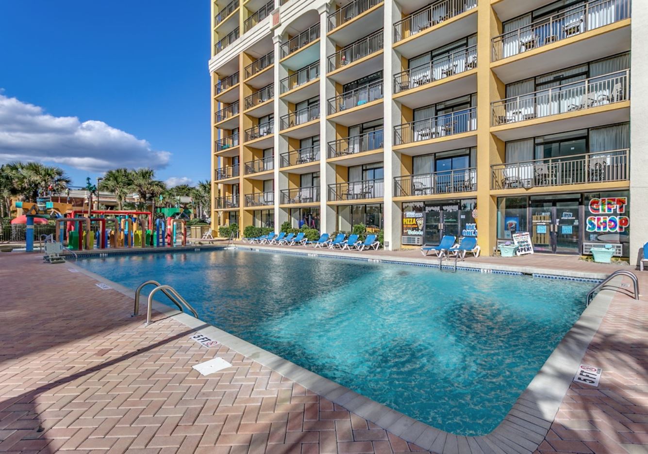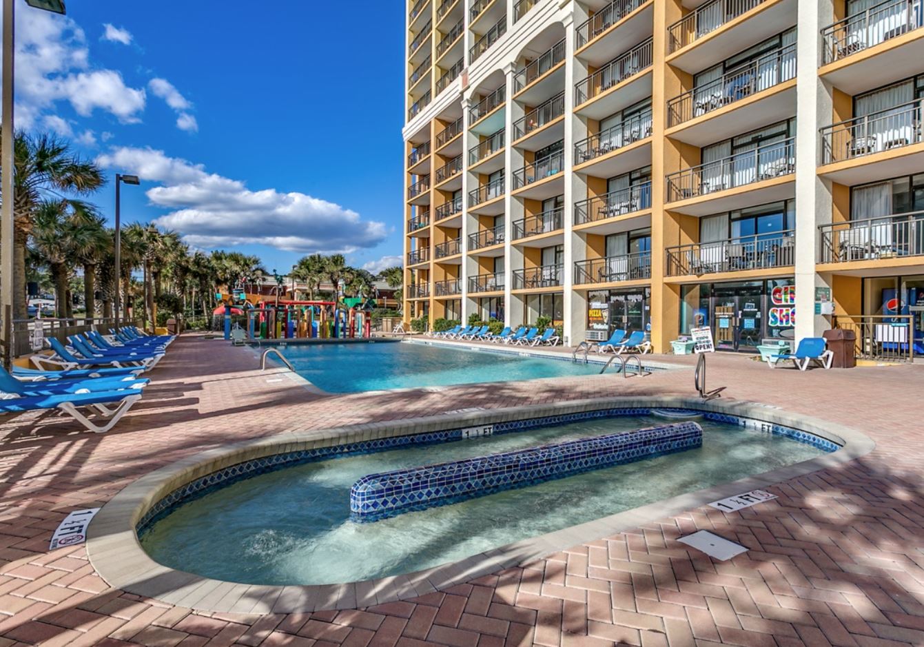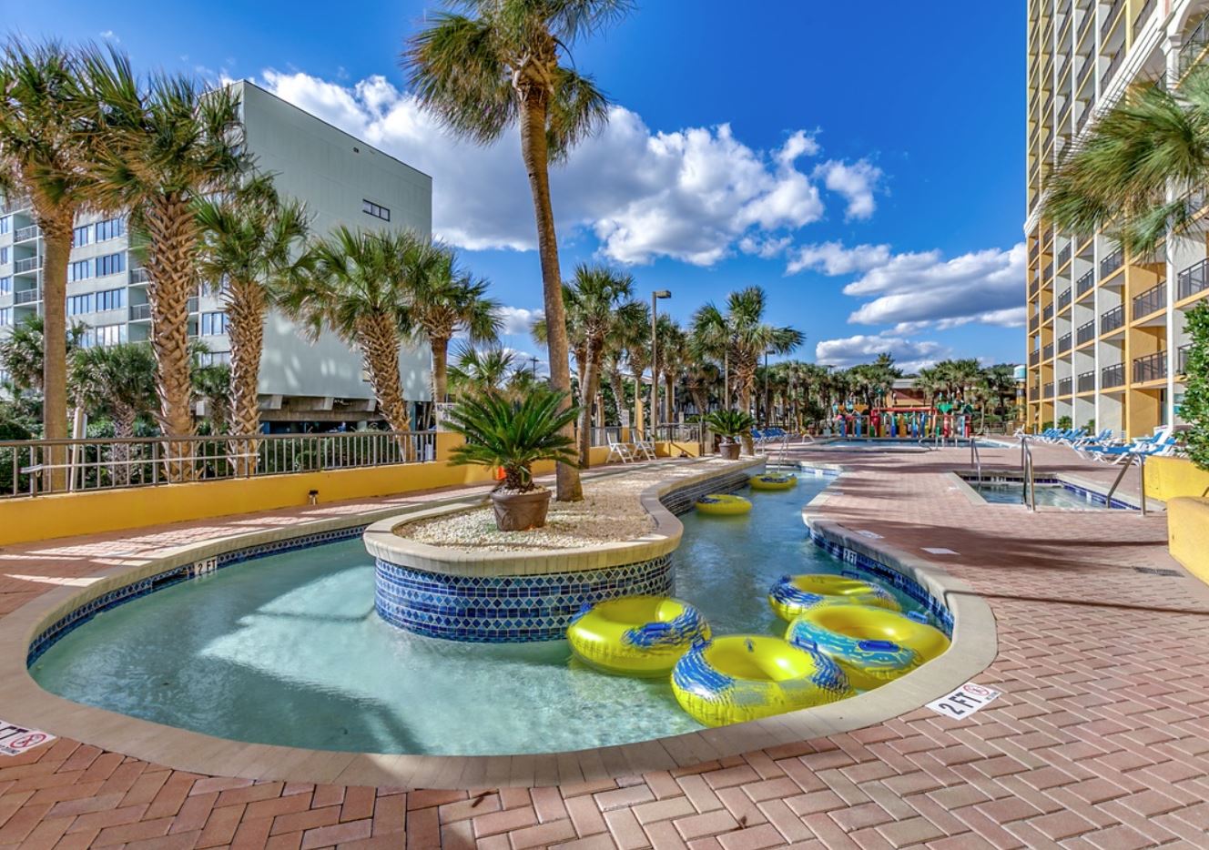 The Caravelle Resort in Myrtle Beach stands out as a classic oceanfront getaway along the Golden Mile. This family-friendly destination offers a wide range of accommodations, including efficiencies, suites, and condos designed for comfort and relaxation. Guests can enjoy the resort’s famous block-long pool deck with a large outdoor heated pool, lazy river, kiddie lazy river, and hot tubs. Those seeking something quieter can unwind on the 7th-floor sun deck with hammocks and sweeping views of the coastline or relax on the oceanfront lawn equipped with lounge chairs and shaded picnic spots. Each room features private balconies, fully equipped kitchens or kitchenettes, and modern amenities to help guests feel right at home.