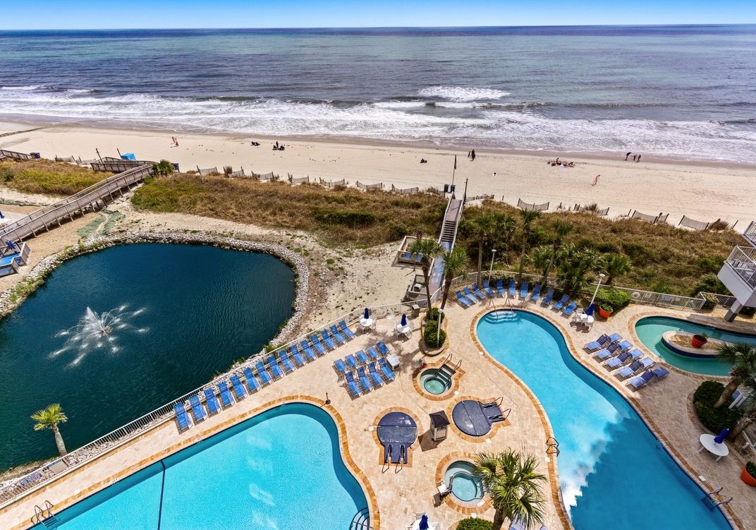 Oceanfront resort | Gated property | Studios, 1–3 bedroom condos | Private balconies | Full kitchens | 6 oceanfront pools | 2 indoor pools (seasonal) | 2 lazy rivers (225 ft) | 10 hot tubs | Kiddie pool | Fire pit | Kids playground | Game room/arcade | Fitness room | On-site restaurant & bar | Poolside tiki bar (seasonal) | Coffee/ice cream shop